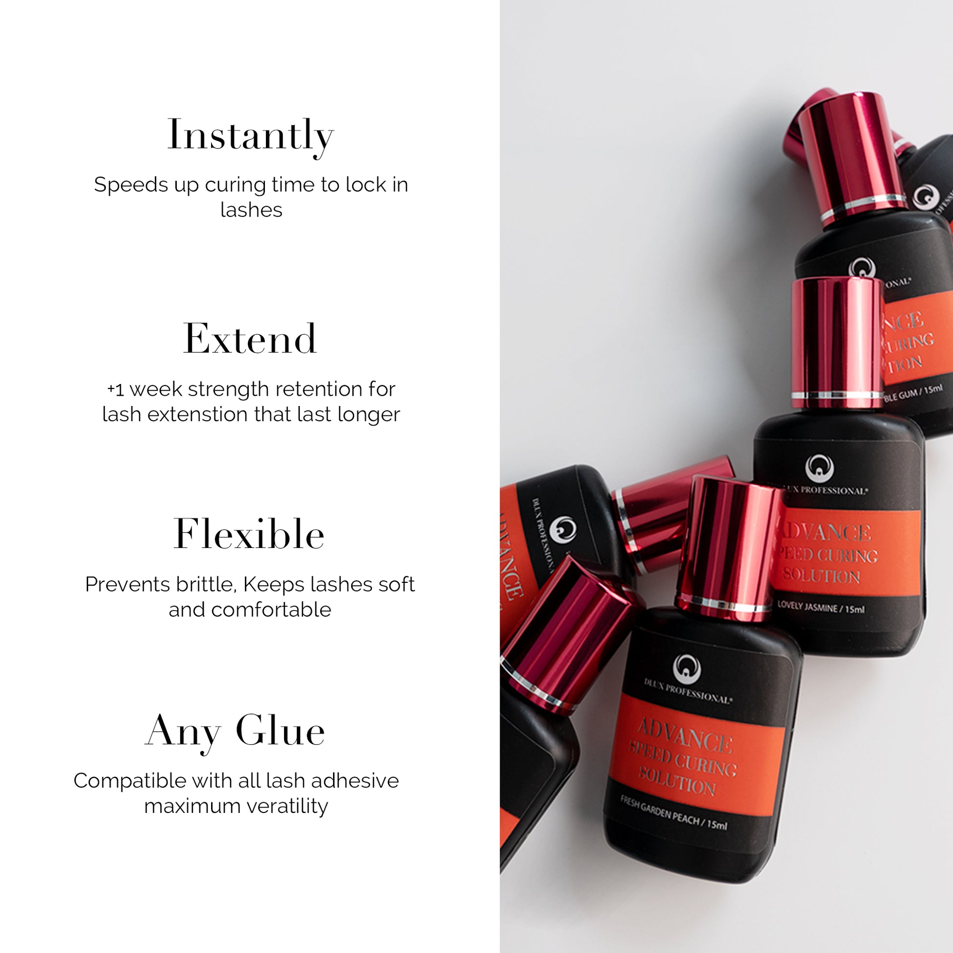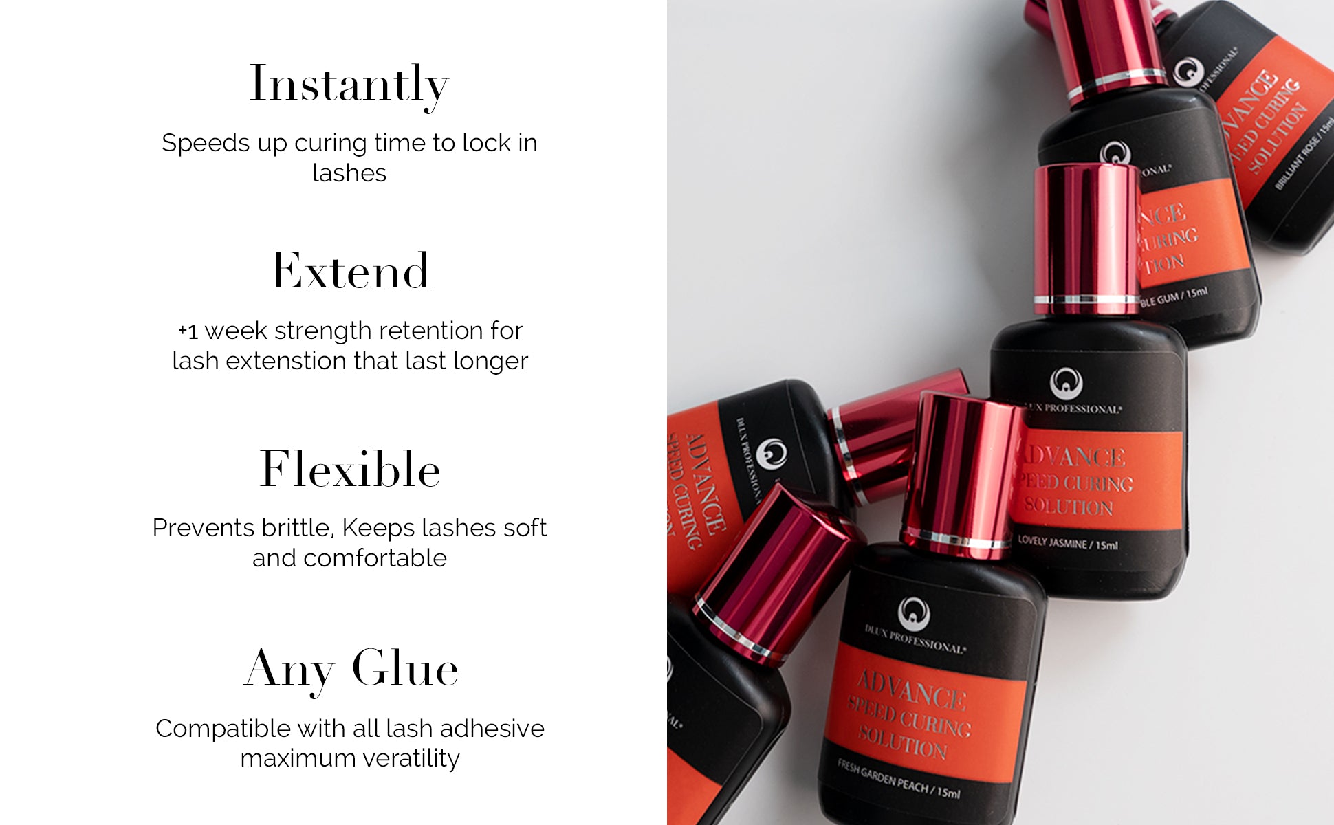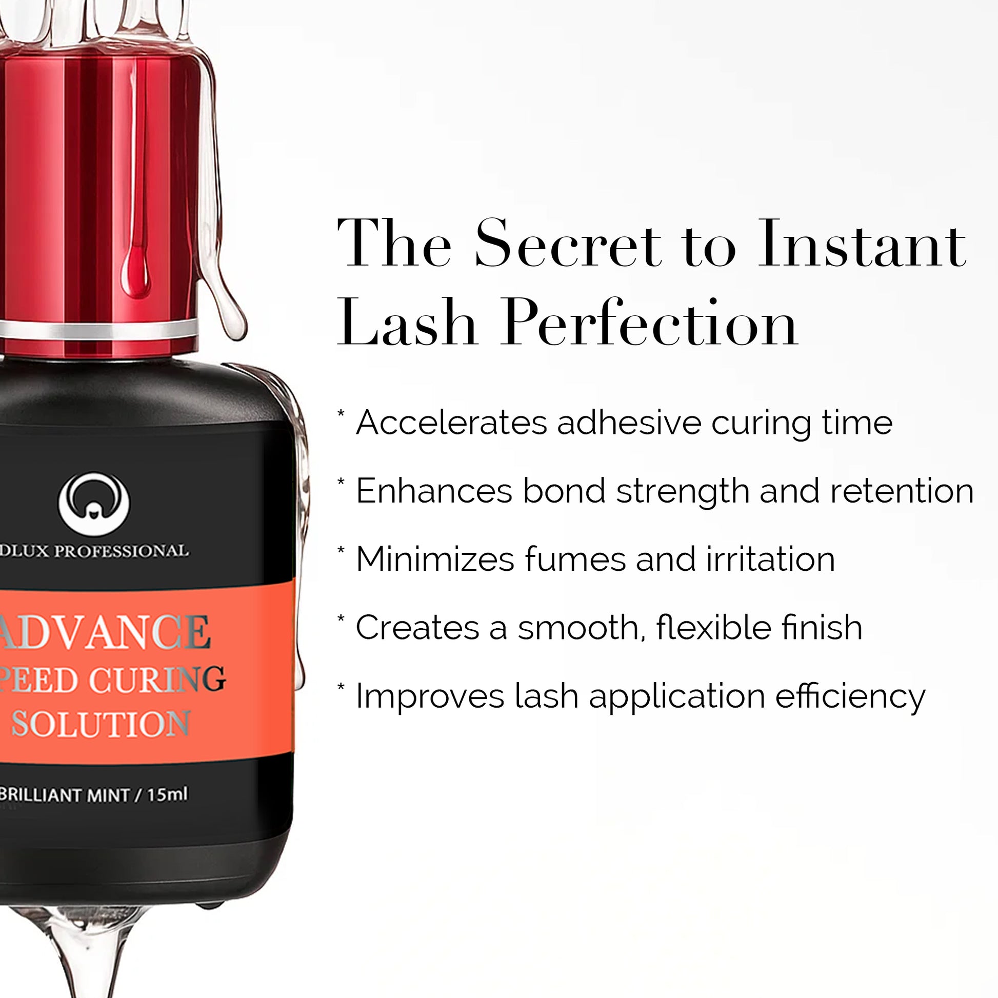 The drying time of eyelash adhesive is greatly accelerated by DLUX Professional's Advance Speed Curing Solution, enabling lash artists to operate more quickly and effectively. This unique product prolongs the retention of lash extensions for longer-lasting effects while also cutting down on curing time.