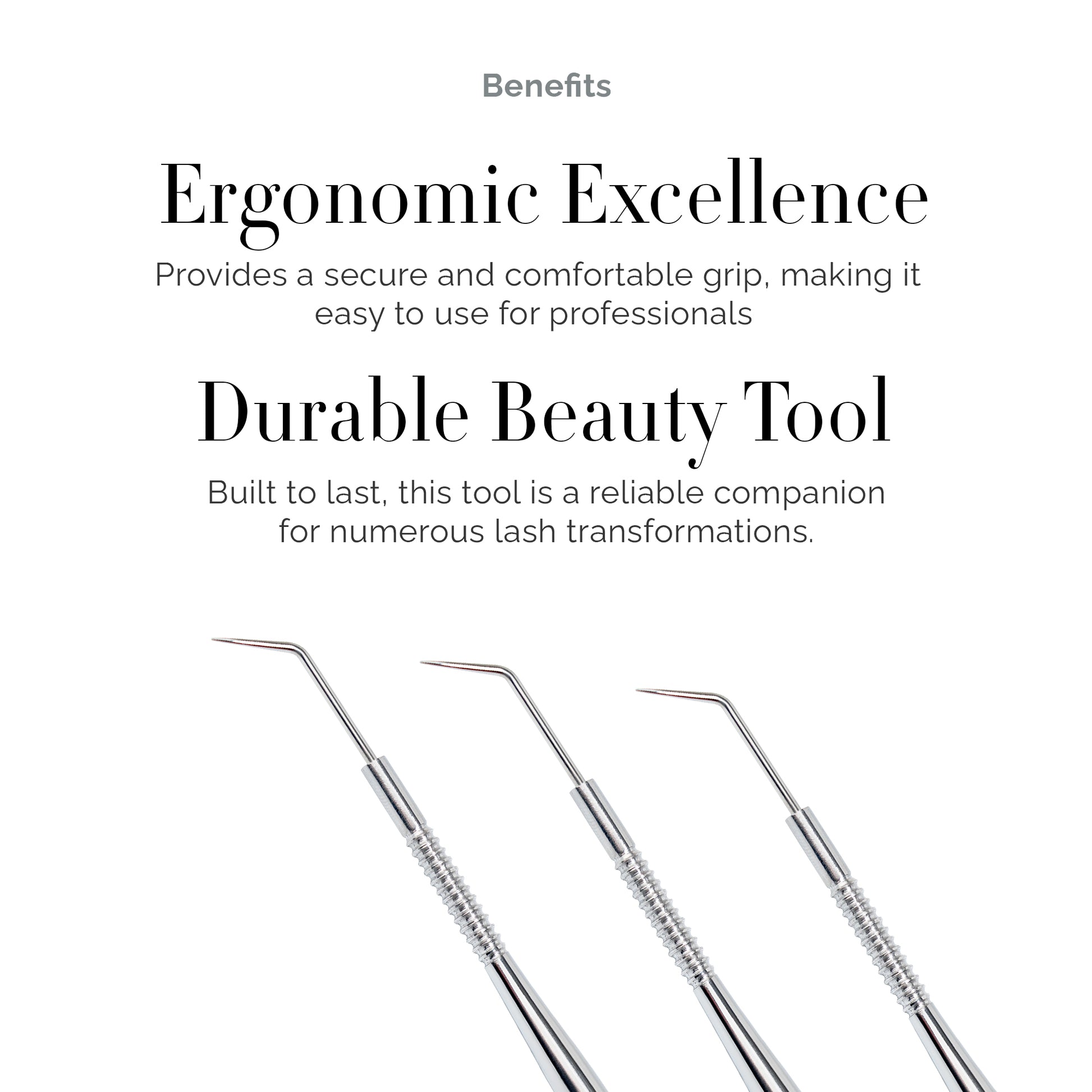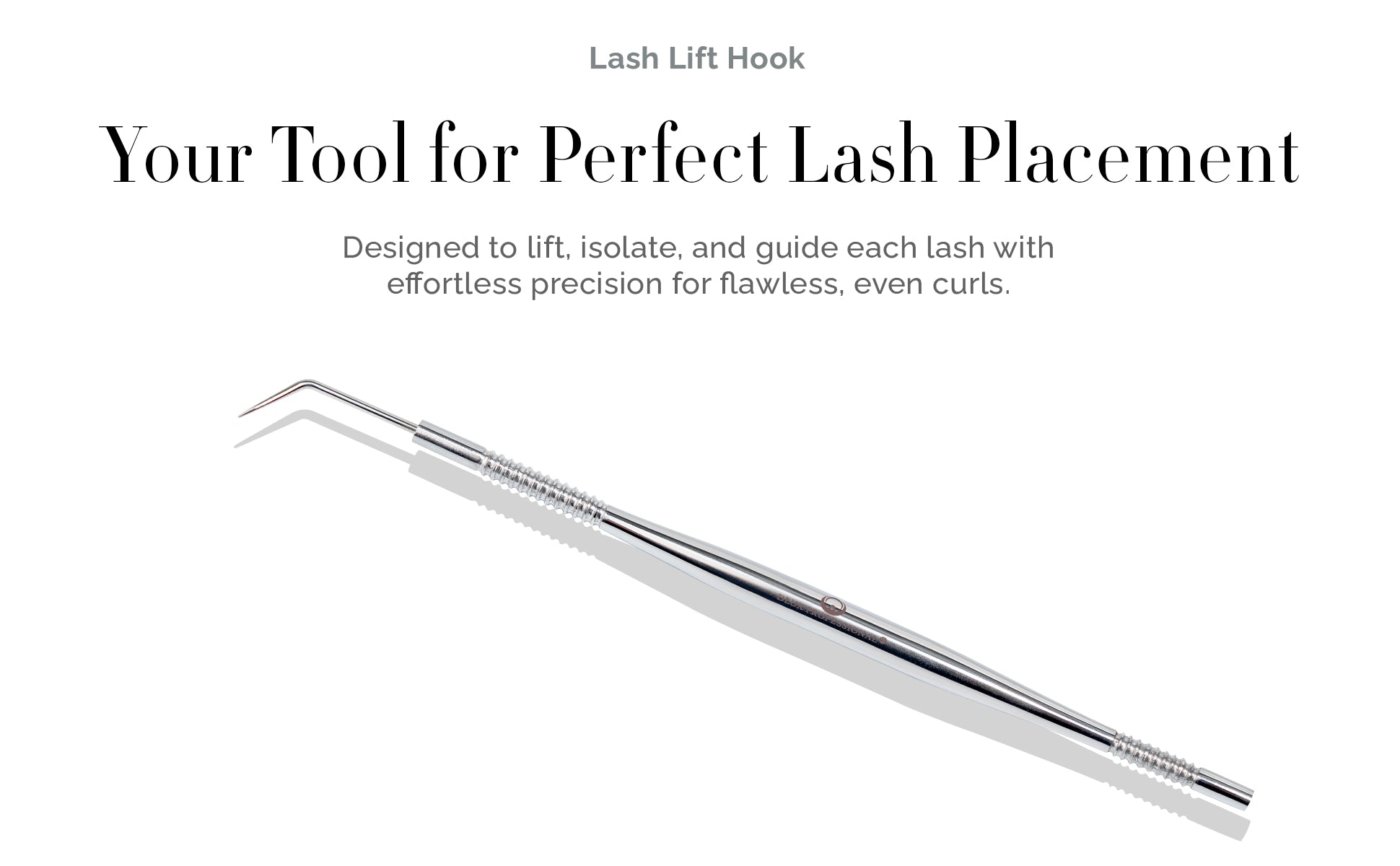 - Use the Hook: Gently use the curved tip to isolate and lift each lash onto the lash lift shield or rod.