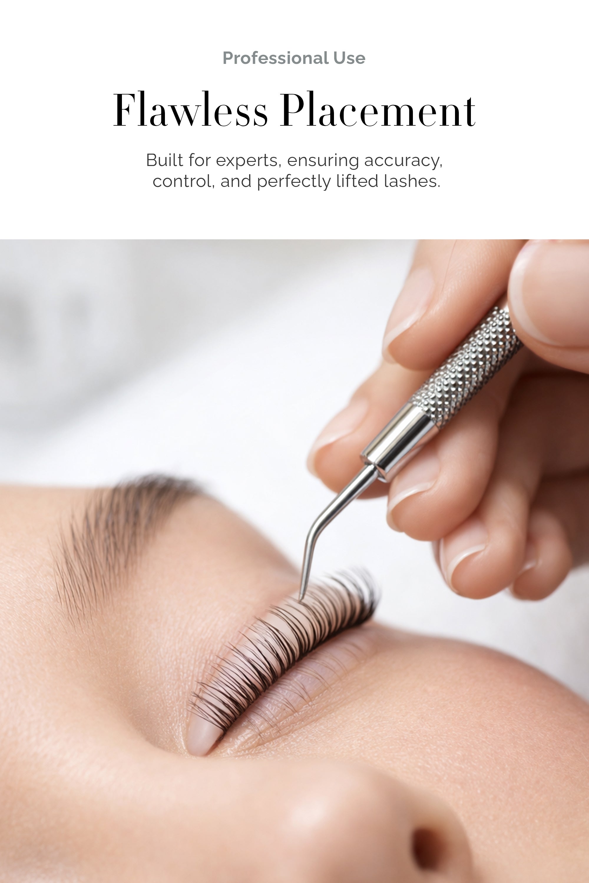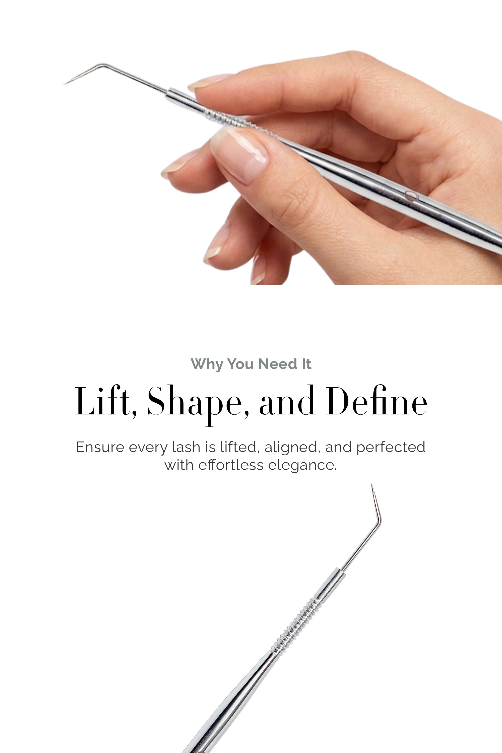 - Use the Hook: Gently use the curved tip to isolate and lift each lash onto the lash lift shield or rod.