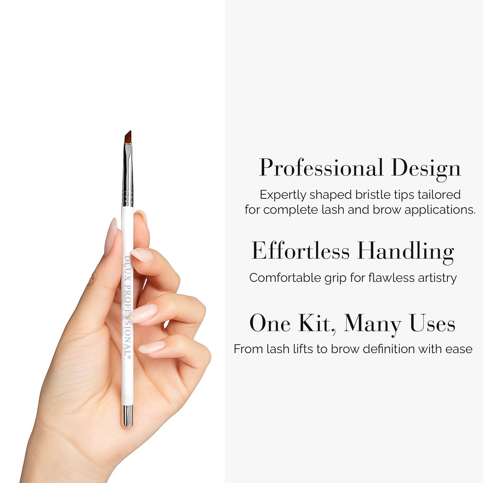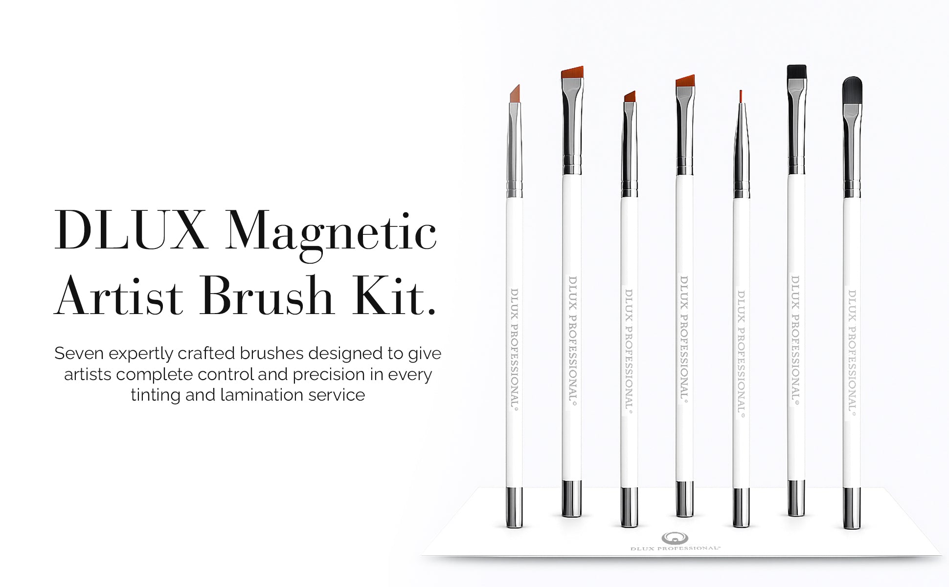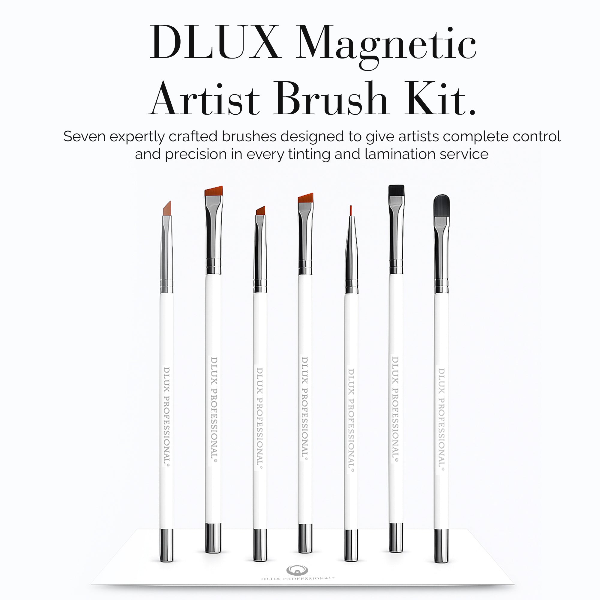 Make every lash lift, brow tint, and lamination procedure look perfect with the DLUX Magnetic Artist Brush Kit. This high-end brush set, which is made for professionals who value comfort, control, and a sleek appearance, comes with a variety of perfectly formed bristle tips for each step of your beauty treatment. Because of their non-slip handle and magnetic metal base, each brush is simple to hold, arrange, and showcase on your lash station.