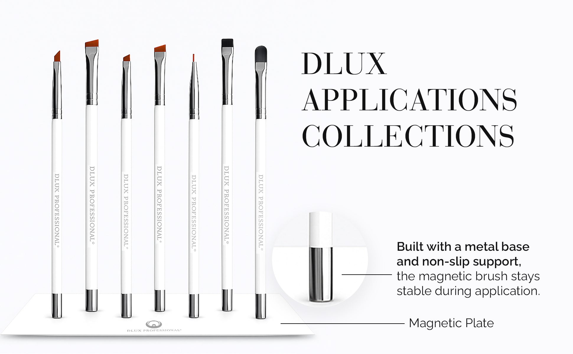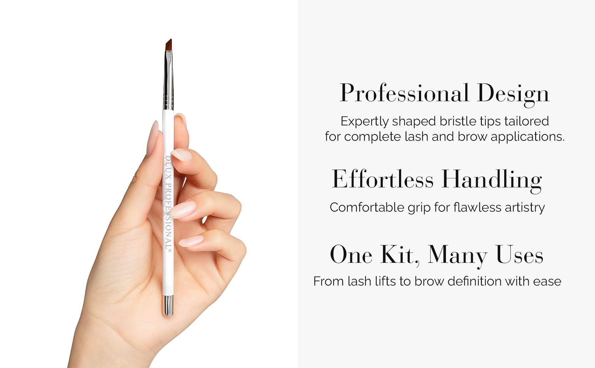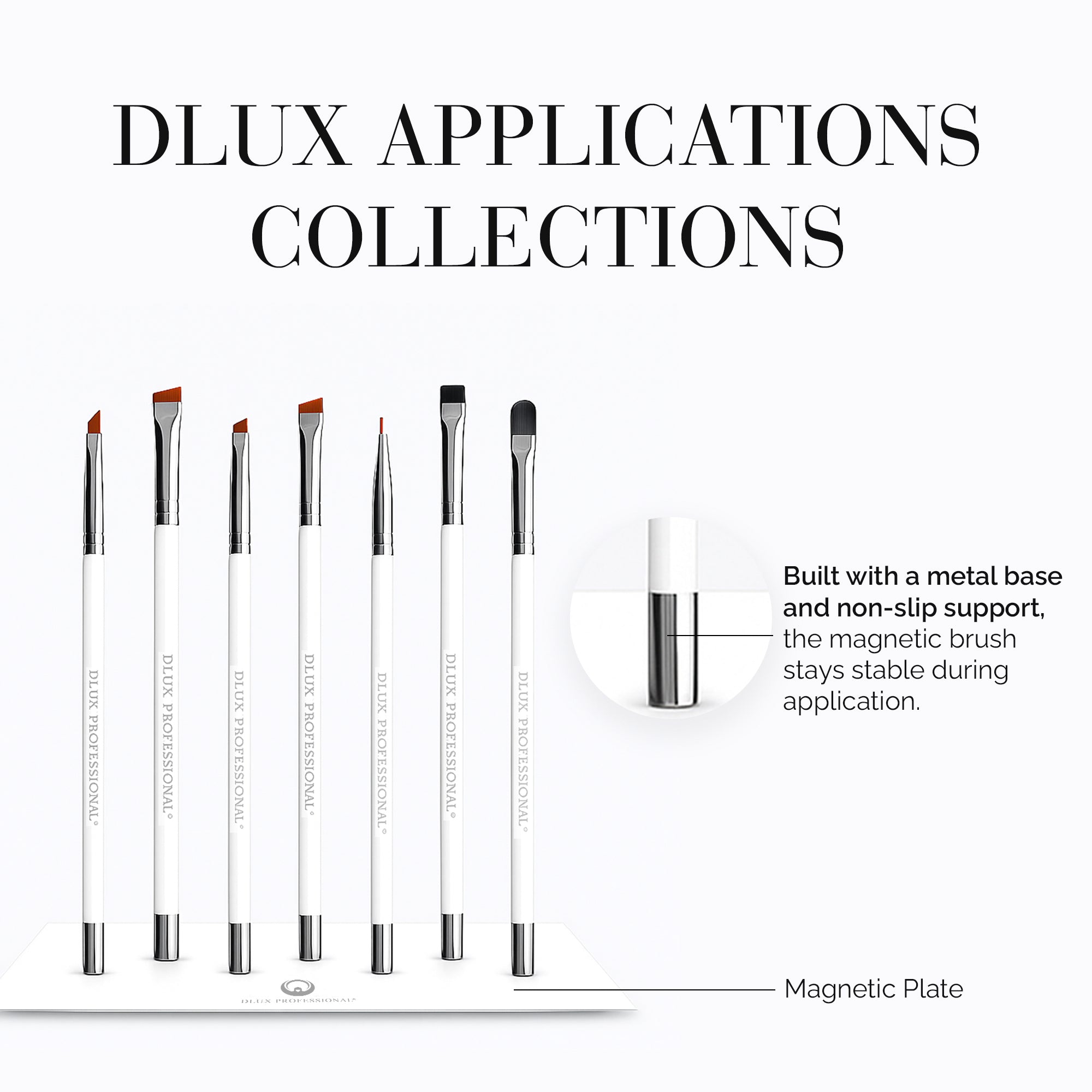 Make every lash lift, brow tint, and lamination procedure look perfect with the DLUX Magnetic Artist Brush Kit. This high-end brush set, which is made for professionals who value comfort, control, and a sleek appearance, comes with a variety of perfectly formed bristle tips for each step of your beauty treatment. Because of their non-slip handle and magnetic metal base, each brush is simple to hold, arrange, and showcase on your lash station.
