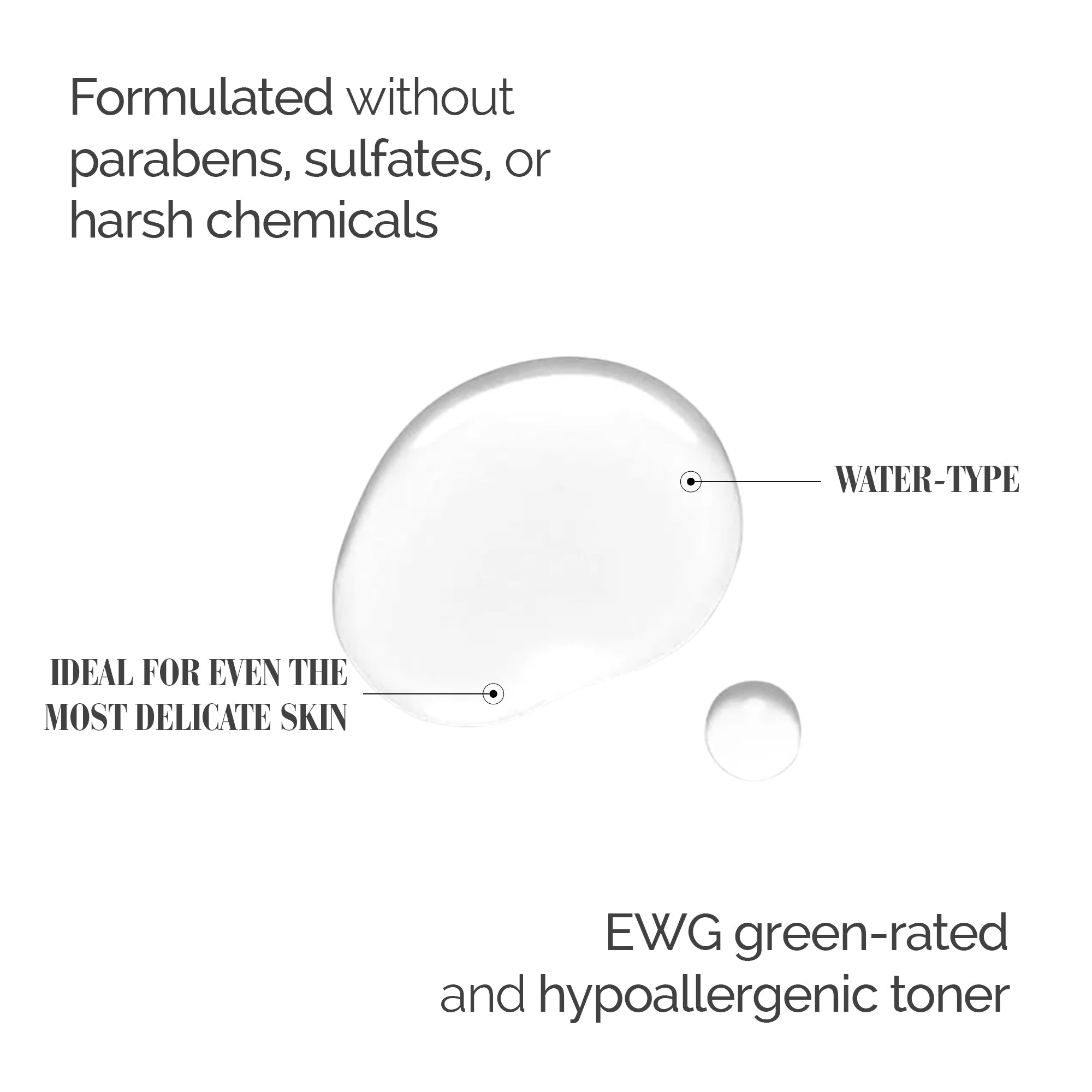 Chlorella vulgaris extract, a nutrient-rich algae renowned for its high chlorophyll content and rejuvenating qualities, is added to this cool water-type toner. Instantly hydrating, it helps restore the skin's natural glow and smooth texture, leaving it fresh and radiant. Ideal for use as both toner and skin essence, the formula is hypoallergenic, carries an EWG Green rating, and is free from five major harmful substances—making it gentle and safe even for sensitive or inflamed skin.