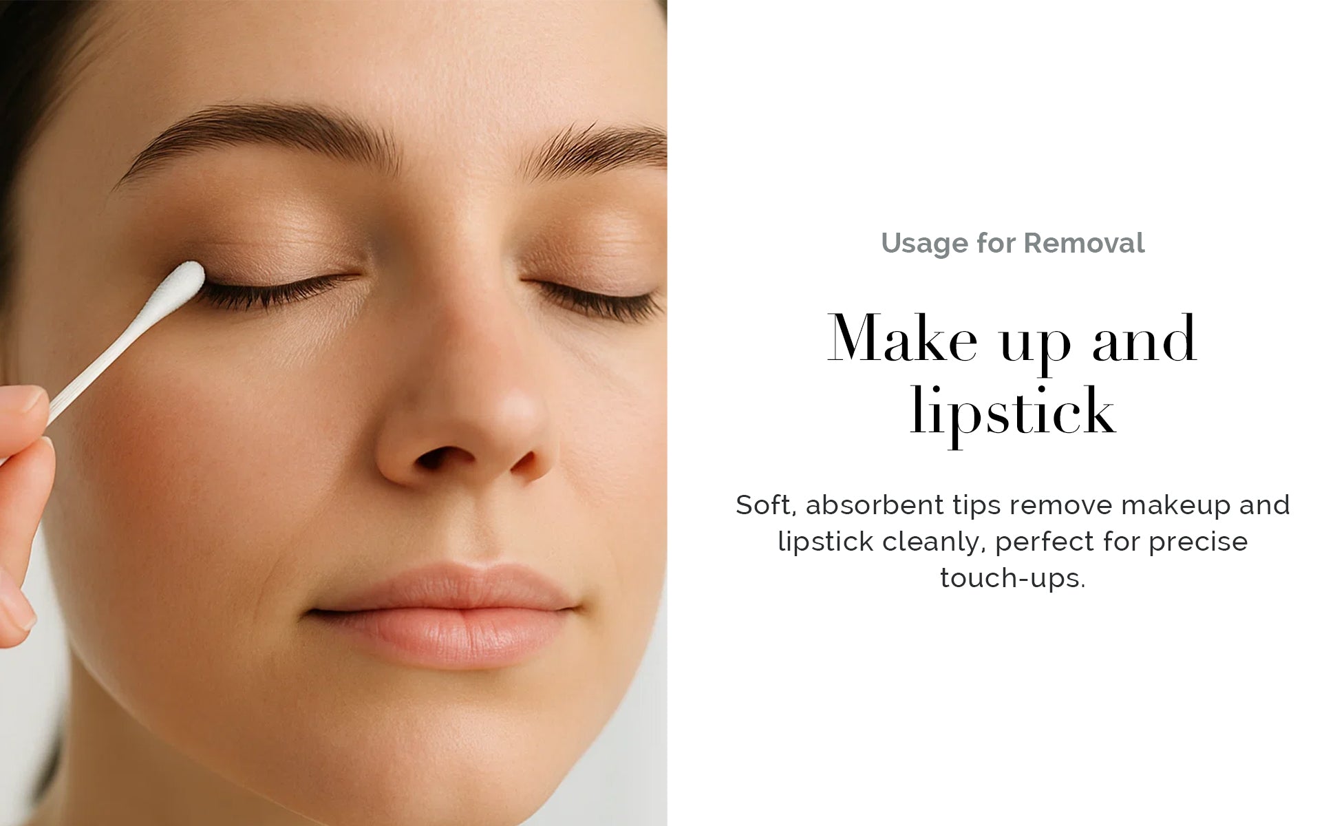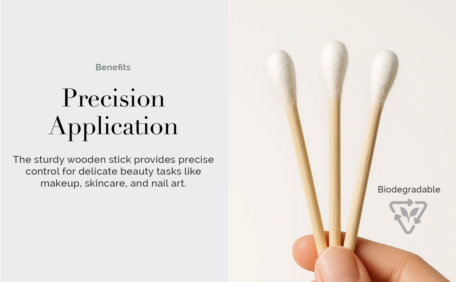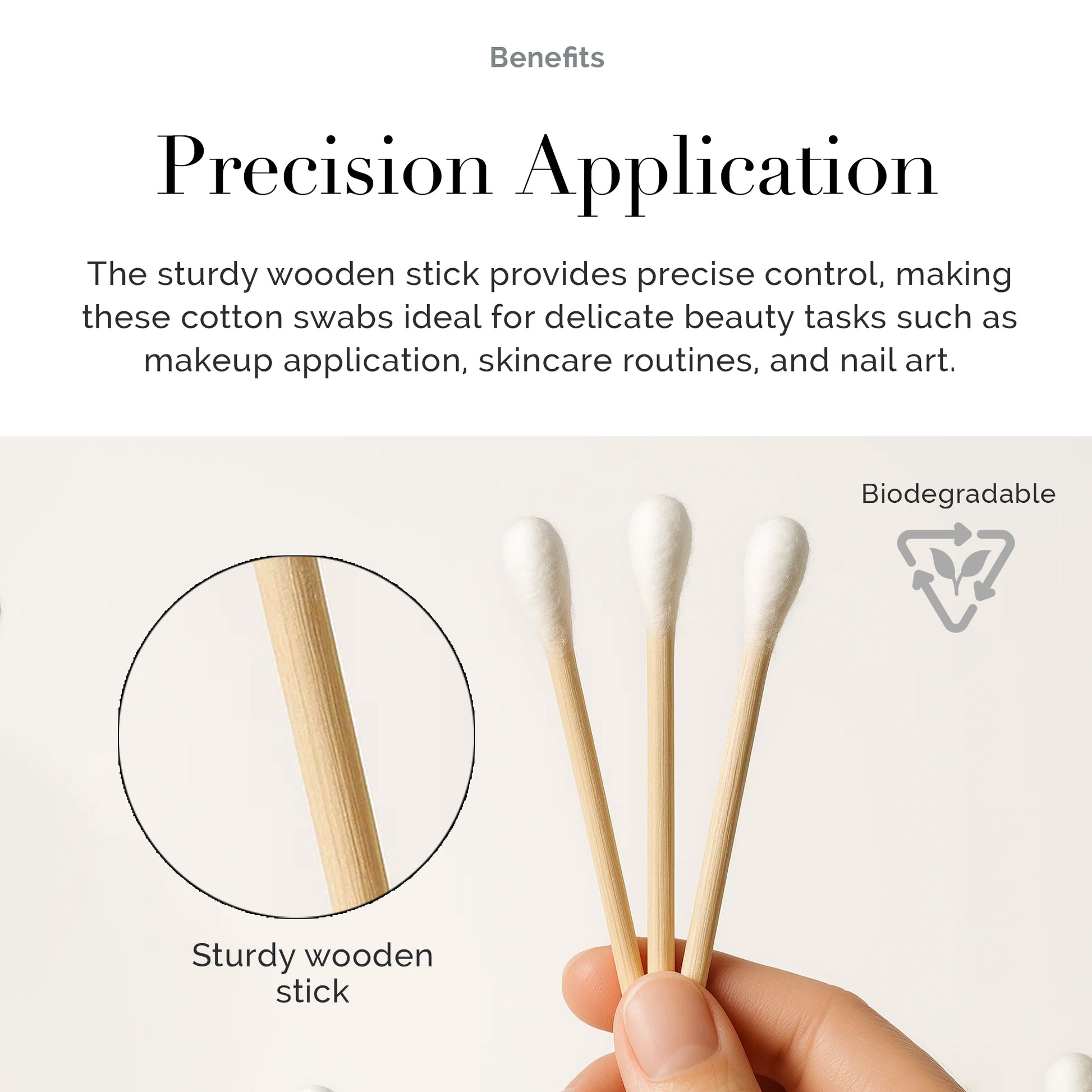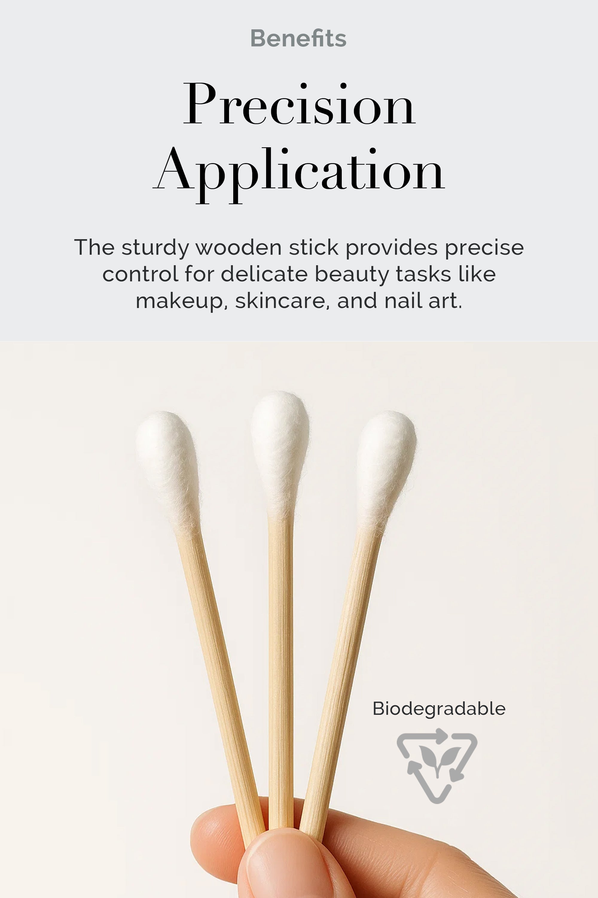 - Precise Application: The sturdy wood stick design ensures precise control, making these cotton swabs ideal for delicate beauty tasks such as makeup application, skincare routines, and nail art.