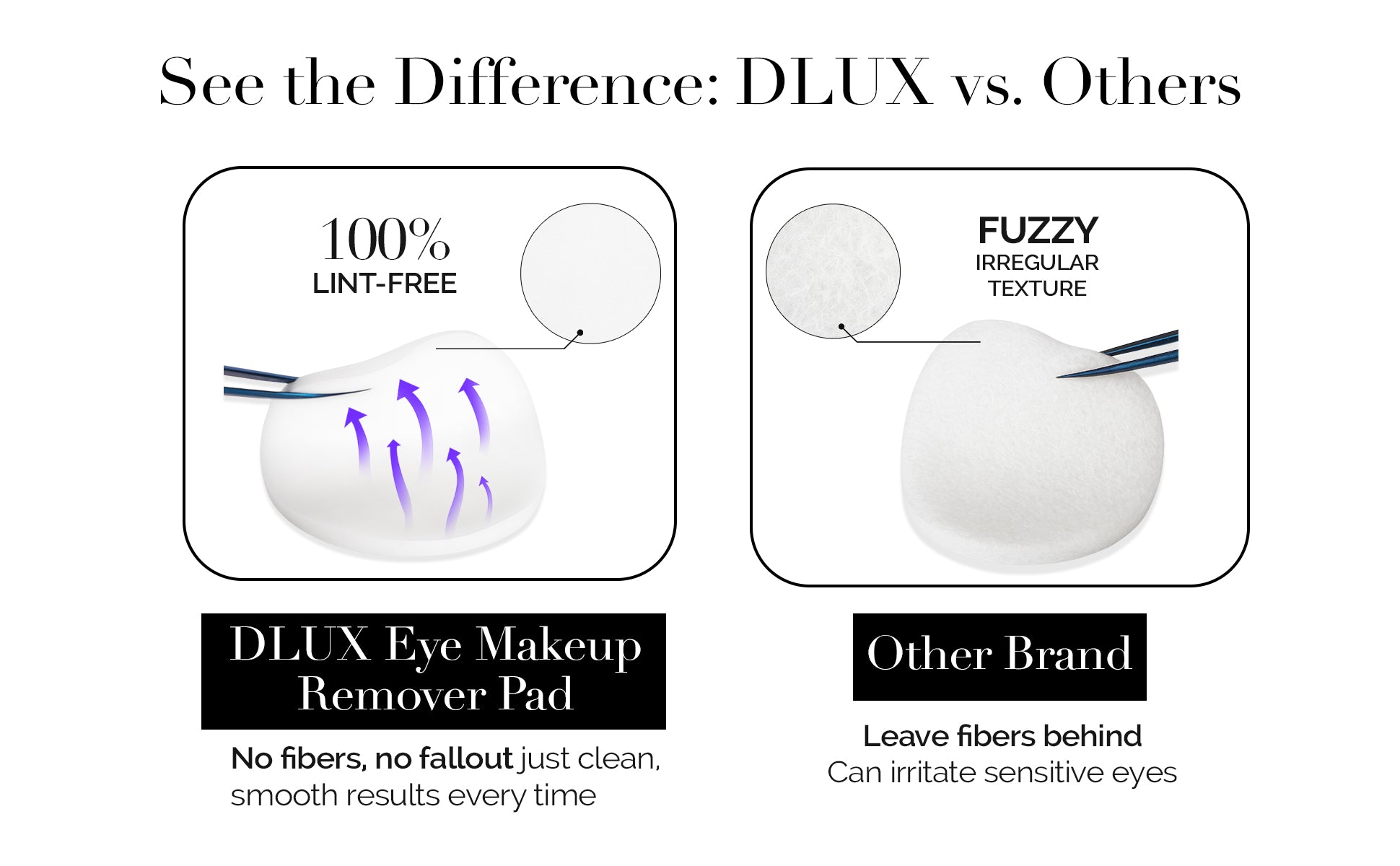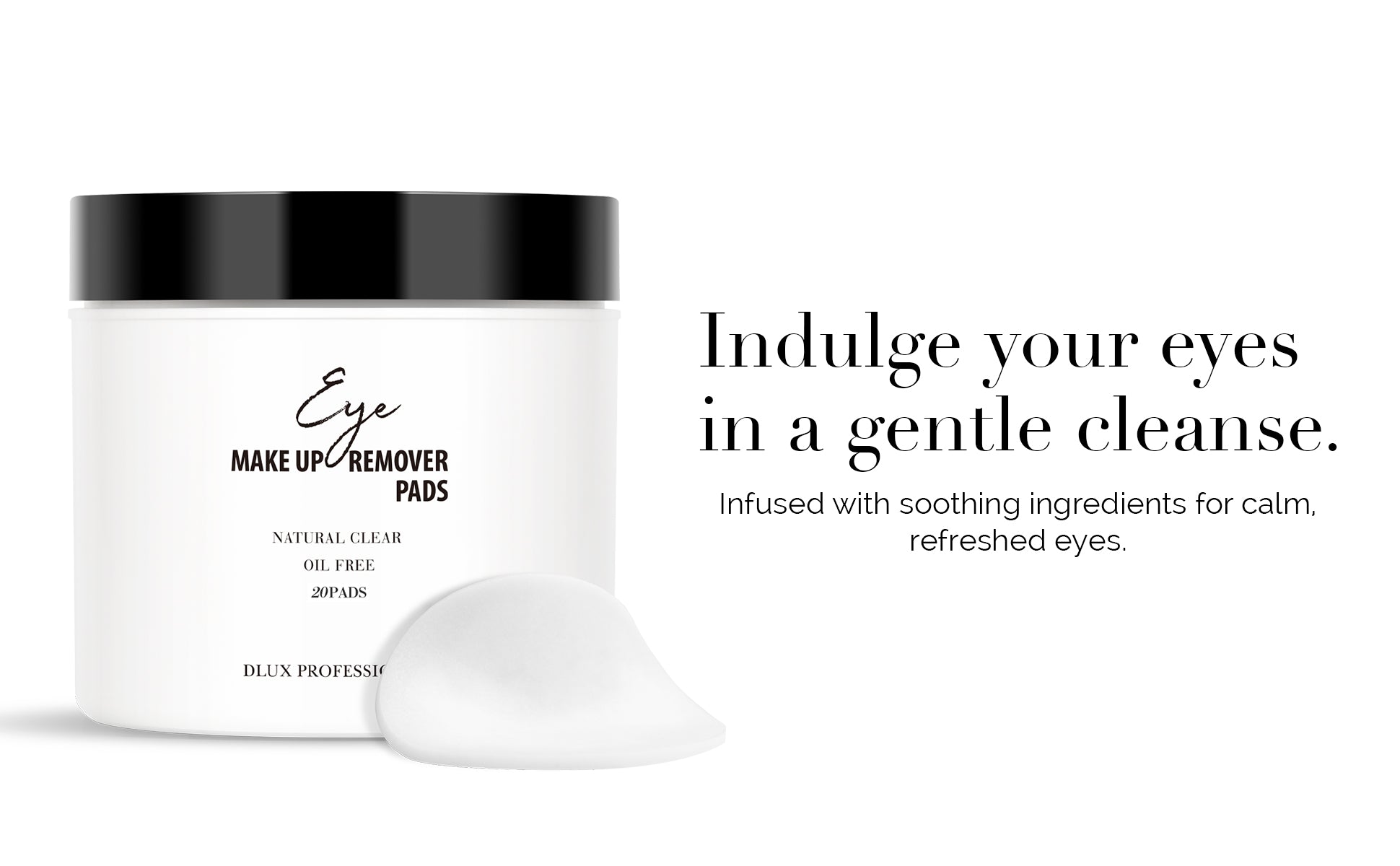 DLUX Eye Makeup Remover Pads are a gentle yet effective way to get clean, refreshed eyes. Say goodbye to persistent eye makeup. A calming, oil-free cream enhances each lint-free pad, nourishing and moisturizing the sensitive eye area while successfully eliminating even waterproof mascara and eyeliner. These smooth, colorless pads are safe for eyelash extensions and made for delicate skin, providing a non-irritating experience each time.