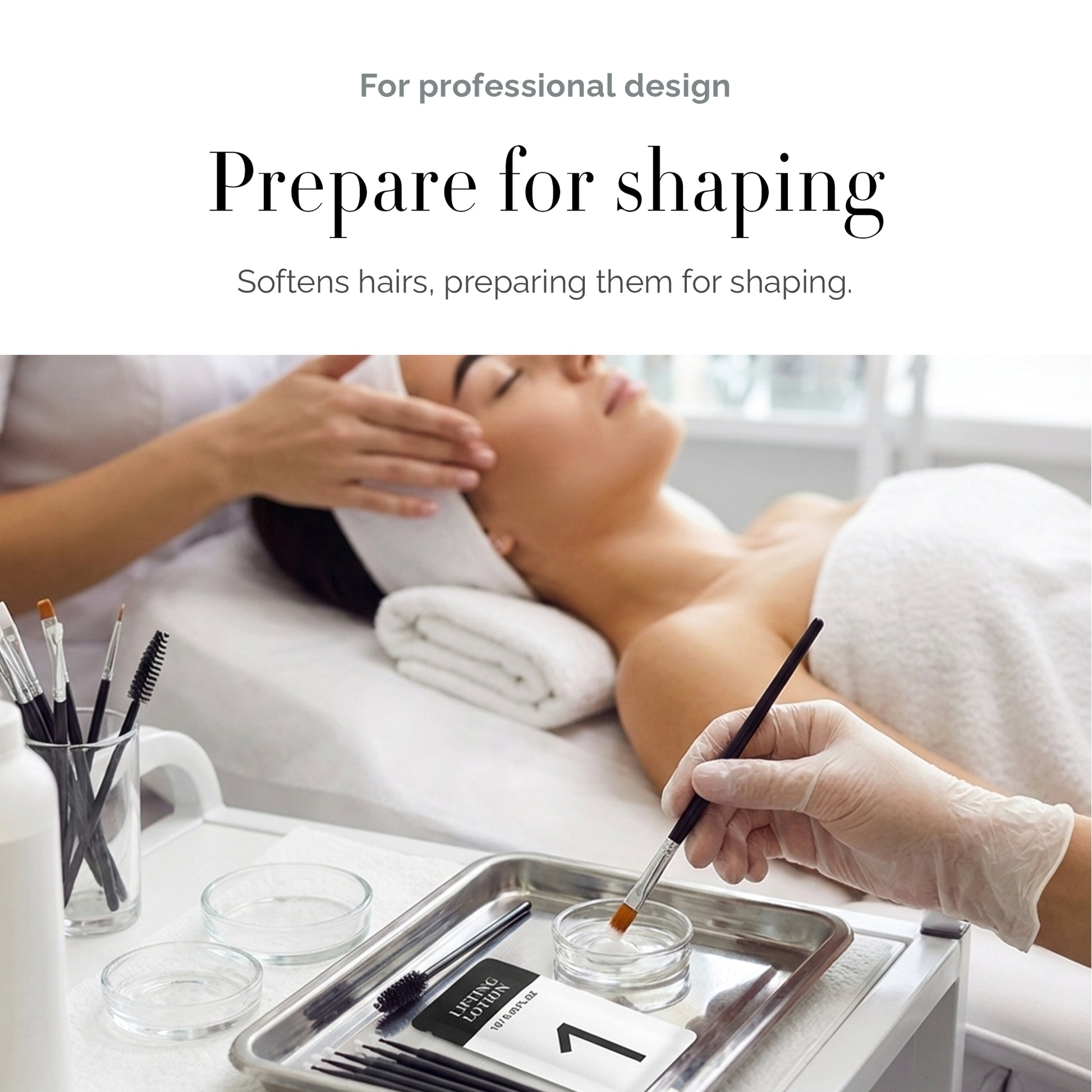 2️⃣ Apply lifting lotion evenly with an applicator brush.