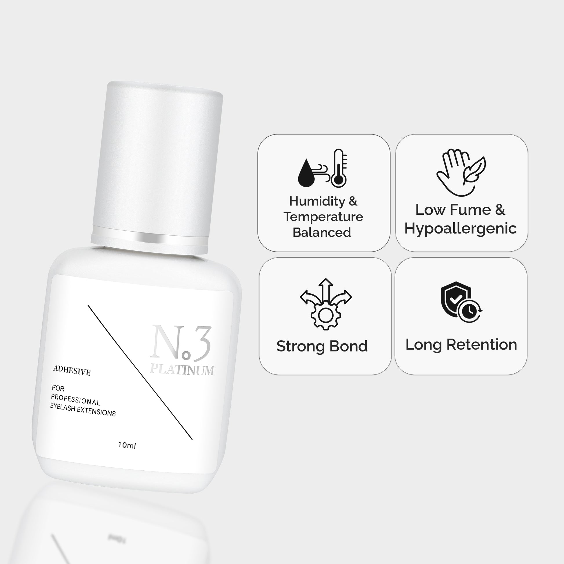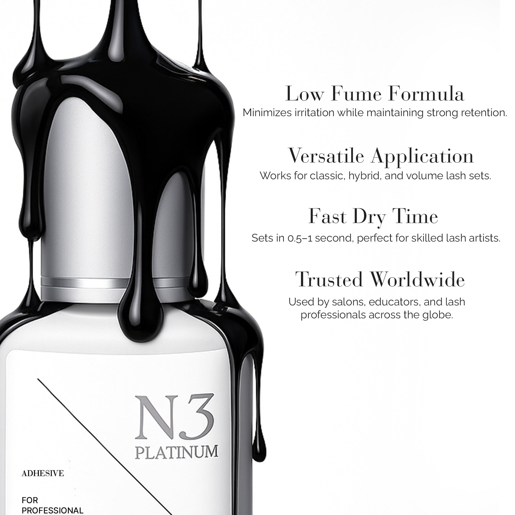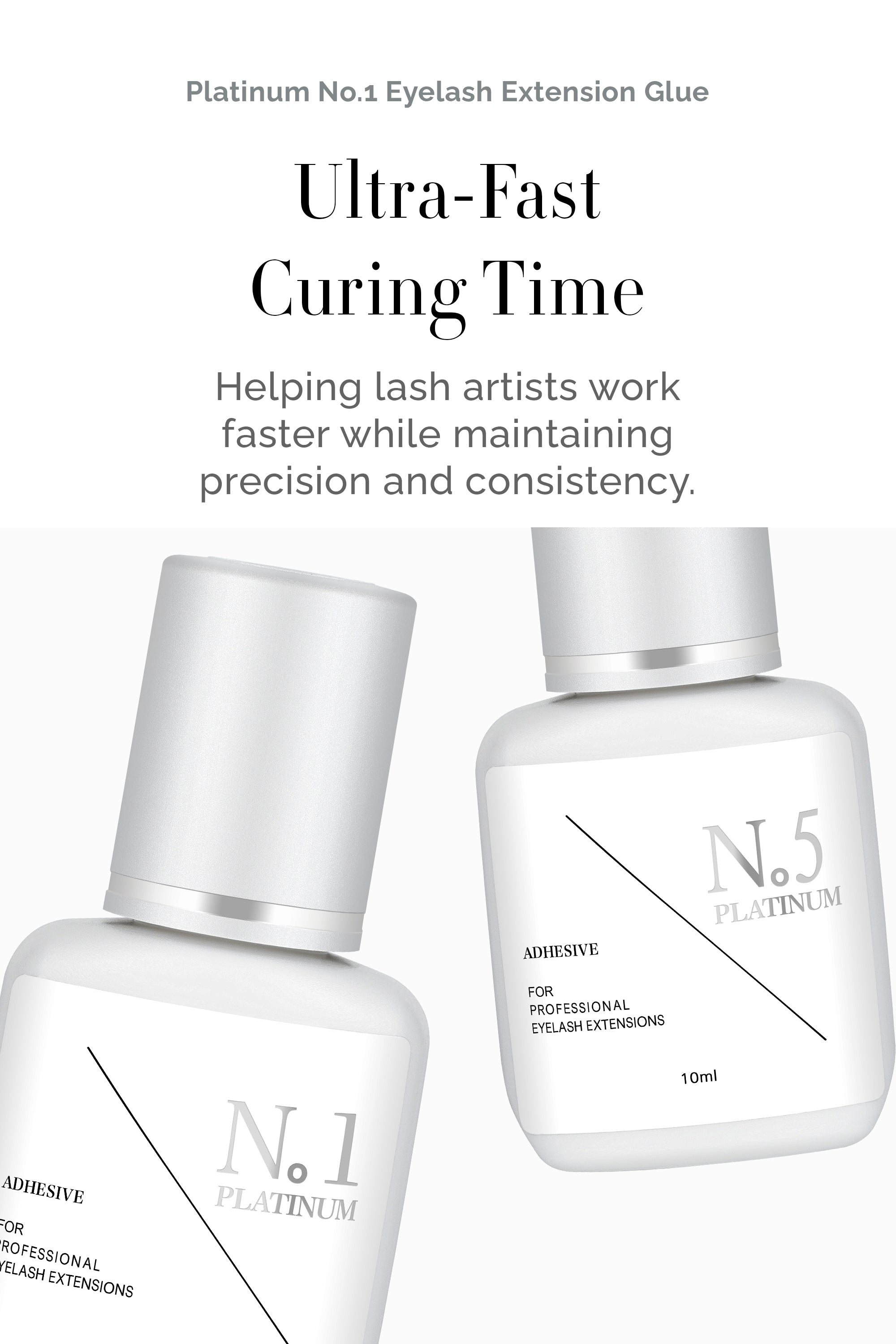 Unparalleled Bond: Provide your clients with a steadfast bond that lasts up to 8 weeks. Our Eyelash Extension Glue Platinum No.1 raises the bar with its tenacious hold, ensuring maximum client satisfaction.