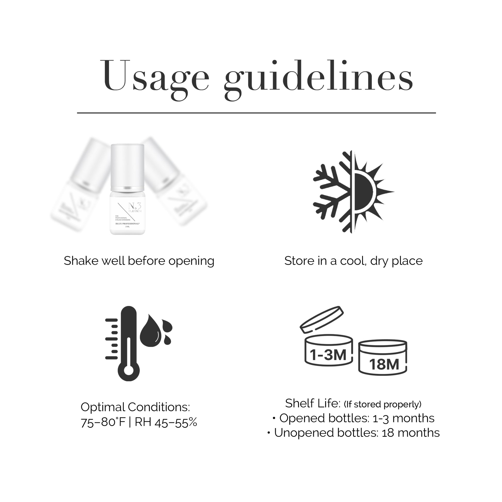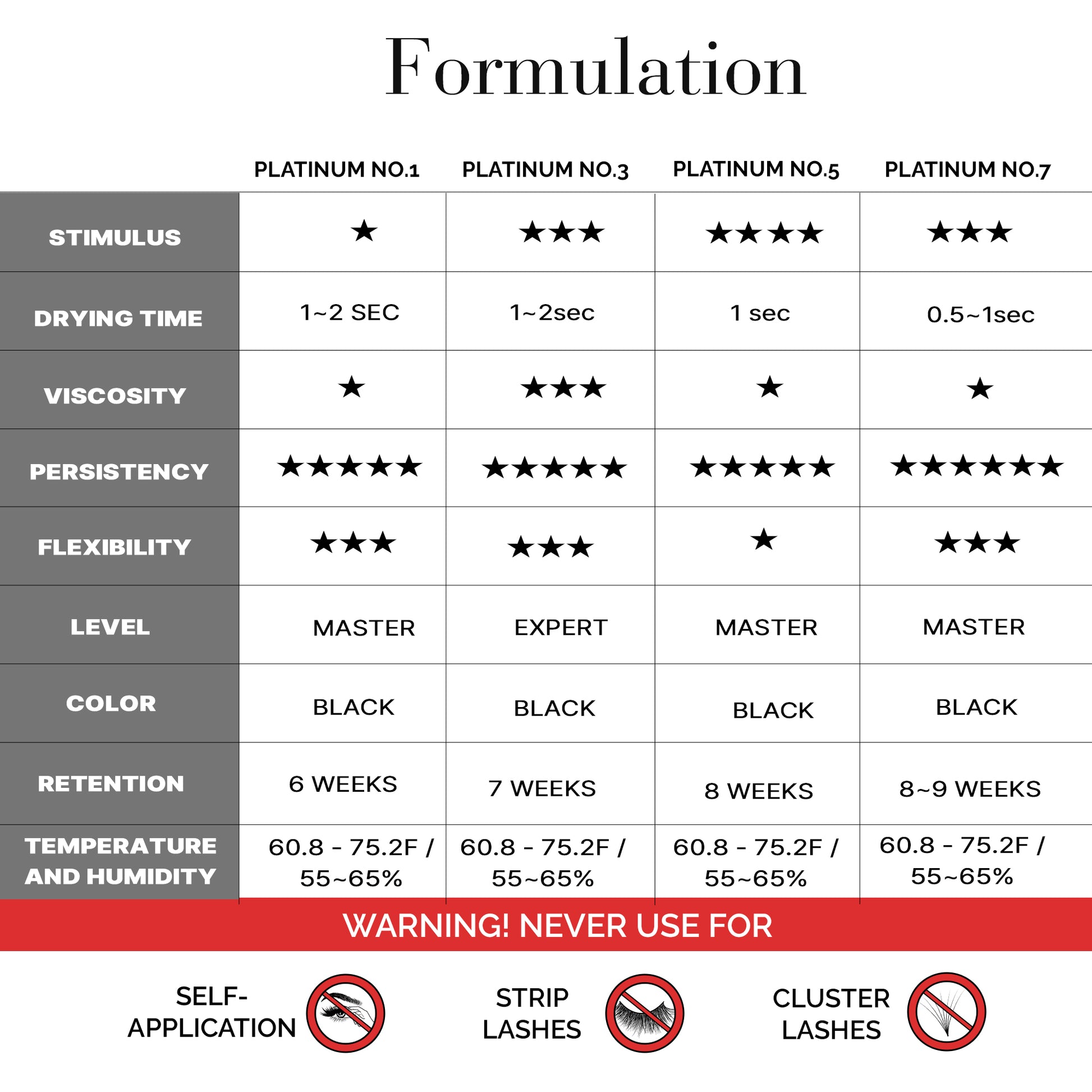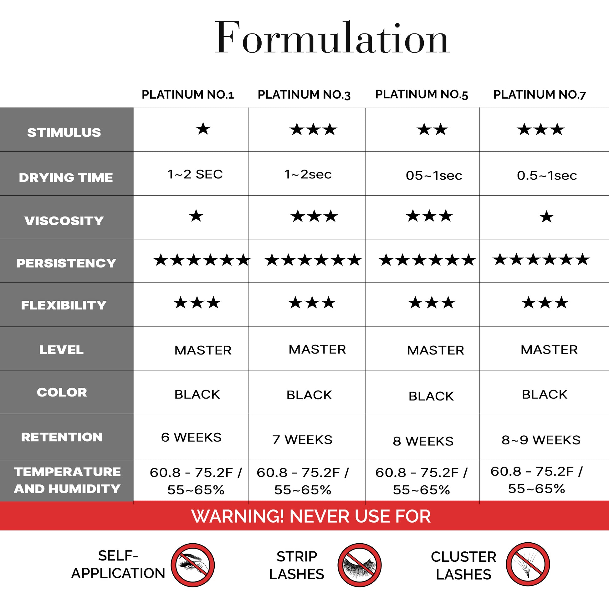 Unparalleled Bond: Provide your clients with a steadfast bond that lasts up to 8 weeks. Our Eyelash Extension Glue Platinum No.1 raises the bar with its tenacious hold, ensuring maximum client satisfaction.
