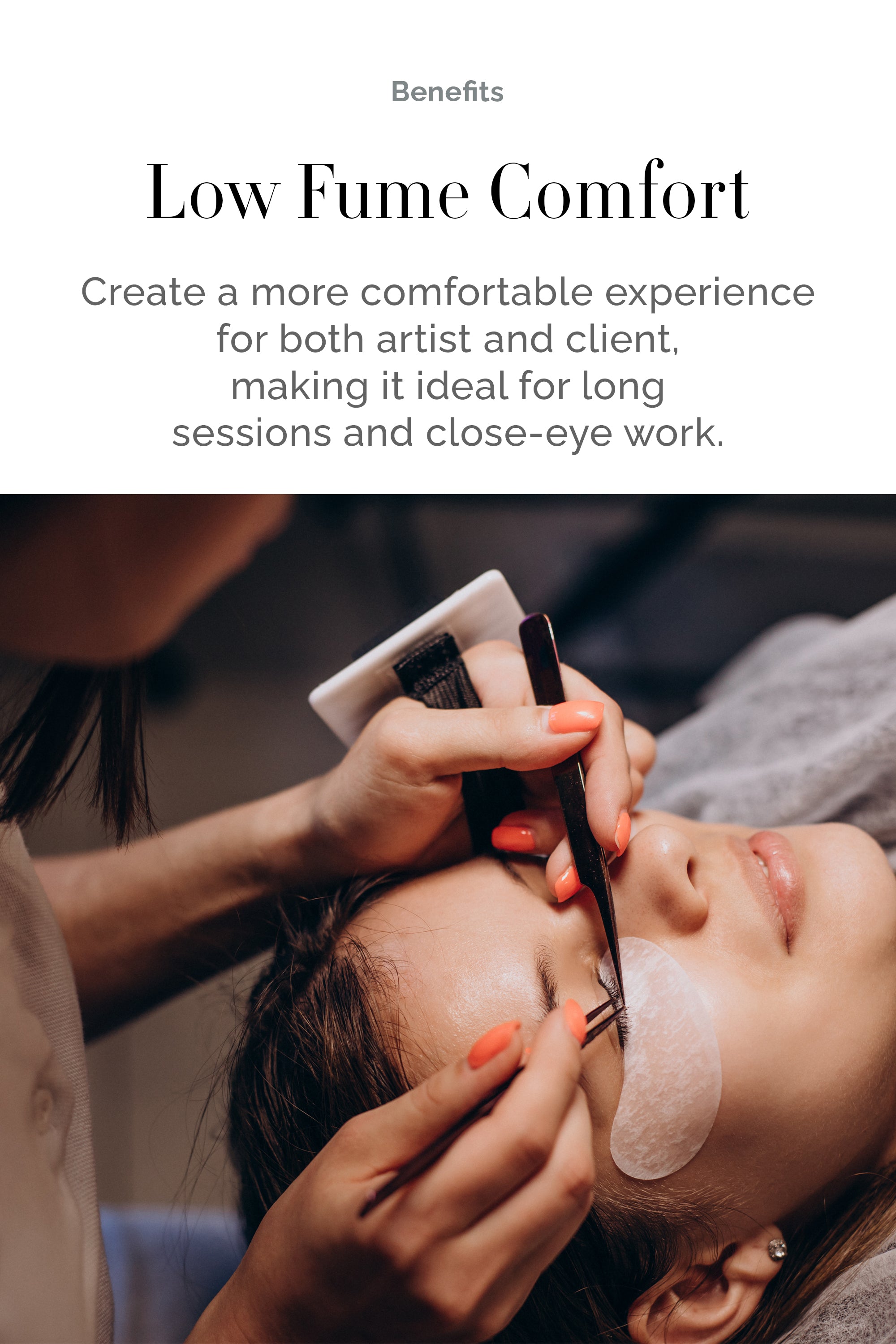 Made with a gentle and hypoallergenic formula, our glue is suitable for even the most sensitive eyes. It also has a low fume level, making it a comfortable choice for both the lash artist and the client.