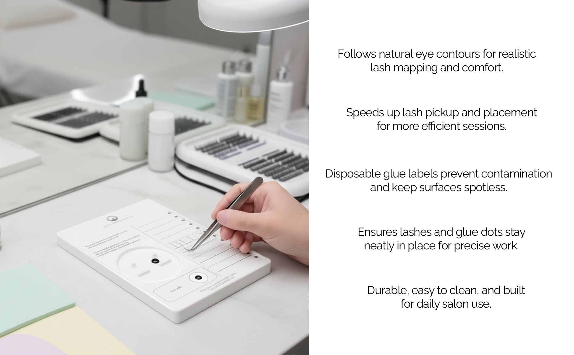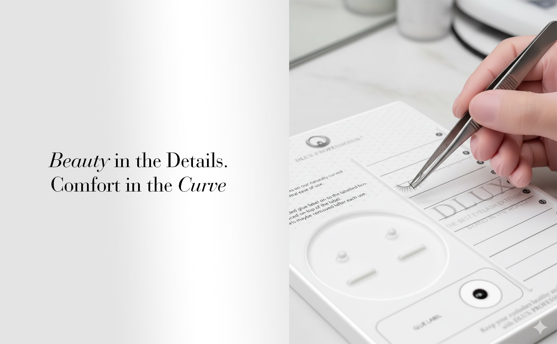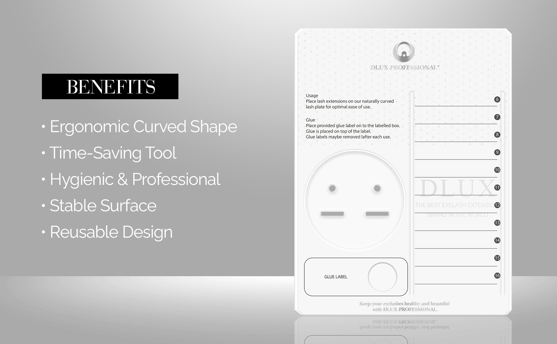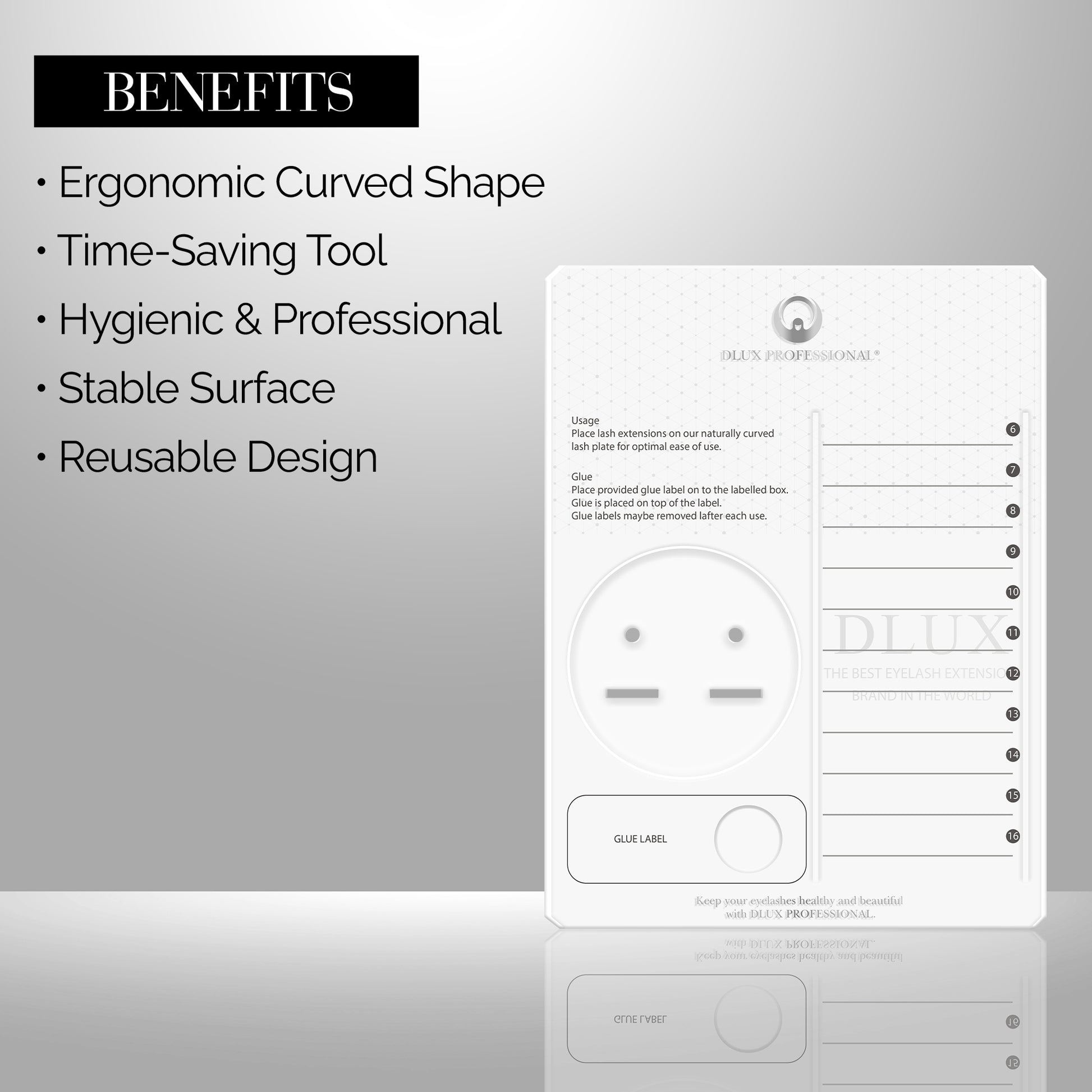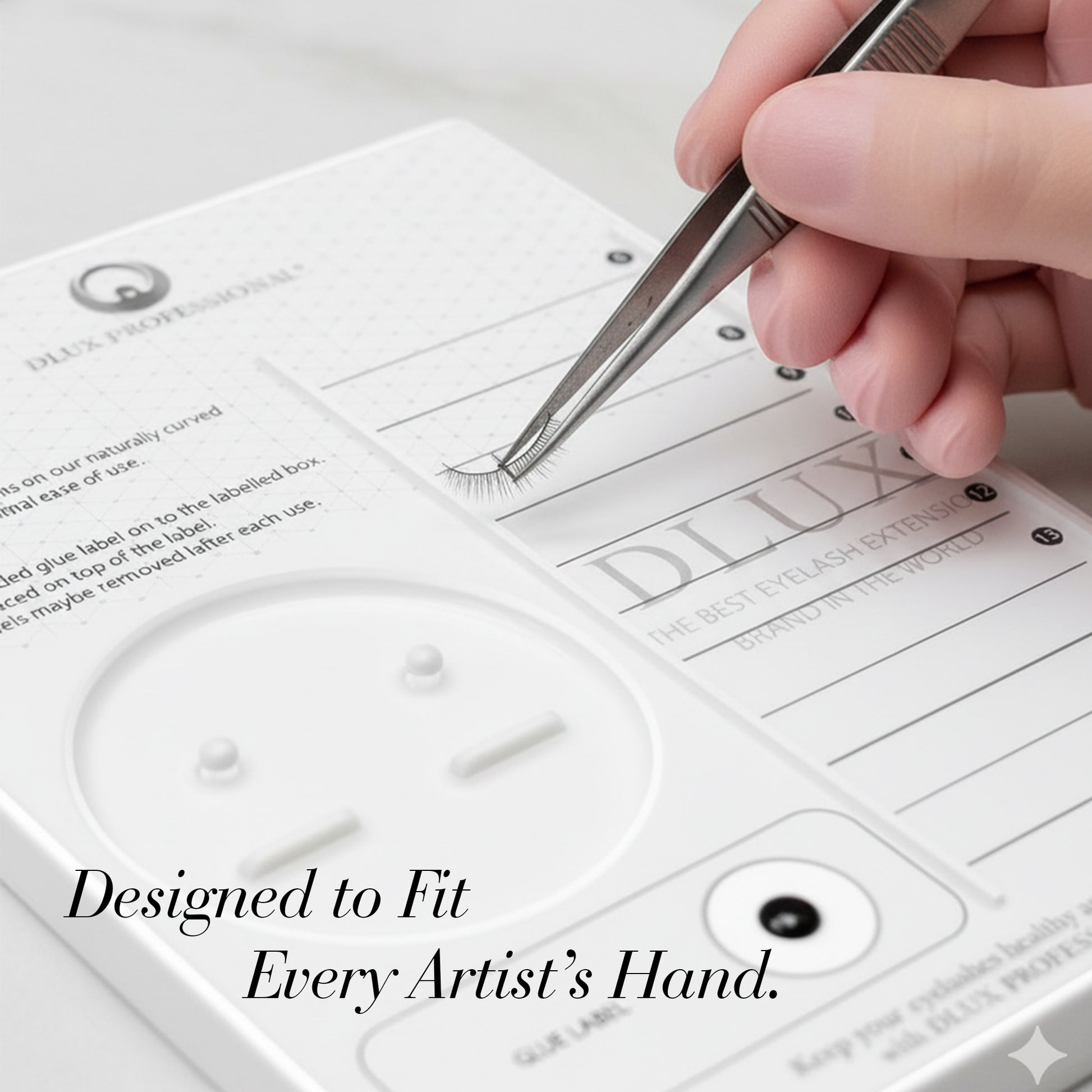 Use the DLUX Eyelash Extension Plate to apply lashes more precisely, quickly, and smoothly. This lash plate's naturally curved design mimics the eye's contours, making it easier to pick up and position extensions. This tool improves your comfort and accuracy while working in a salon.
