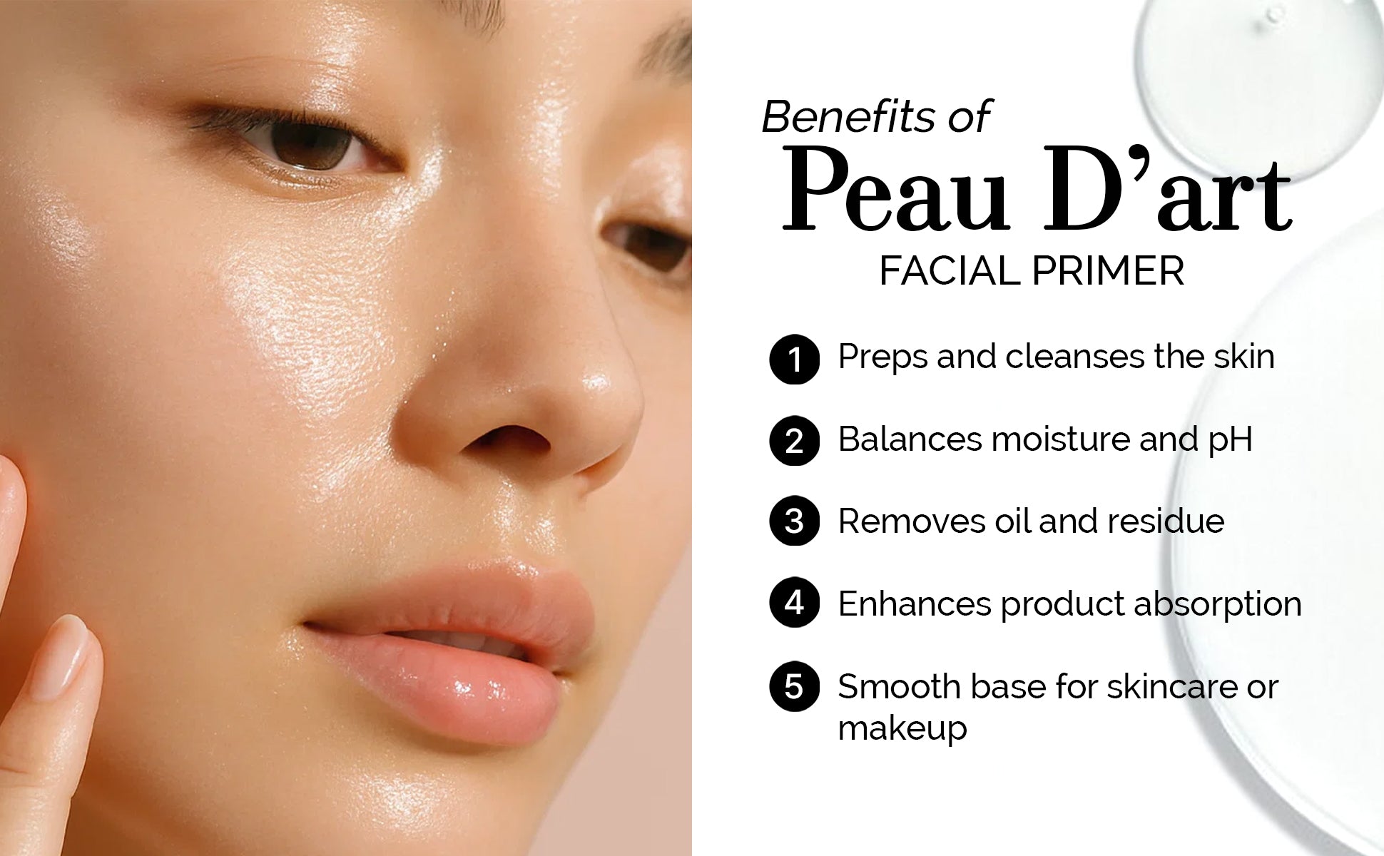 Start your skincare routine with Dlux Peau D’art Skin Primer, it has watery-type formula that hydrates and clean your skin. It is Made in Korea, formulated with fresh, mild, and oil-free ingredients, this gentle water-type primer removes impurities while prepping your skin for maximum absorption of serums and creams. Whether you're beginning your skincare or makeup routine, this gentle primer ensures a clean, hydrated base. Experience K-beauty prep at its finest.