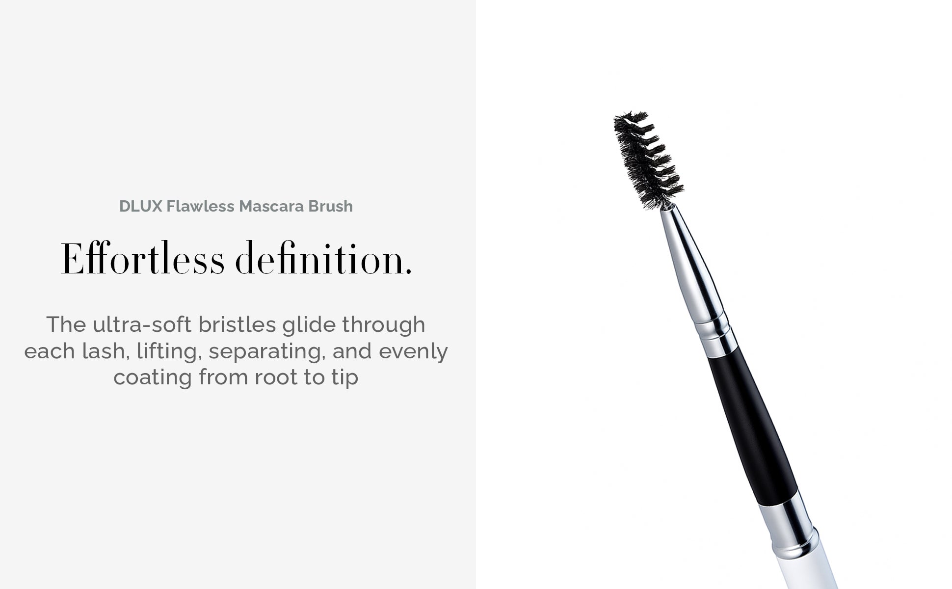 The DLUX Flawless Mascara Brush is your go-to tool for volume, length, and definition, so use it to achieve bold, gorgeous lashes.