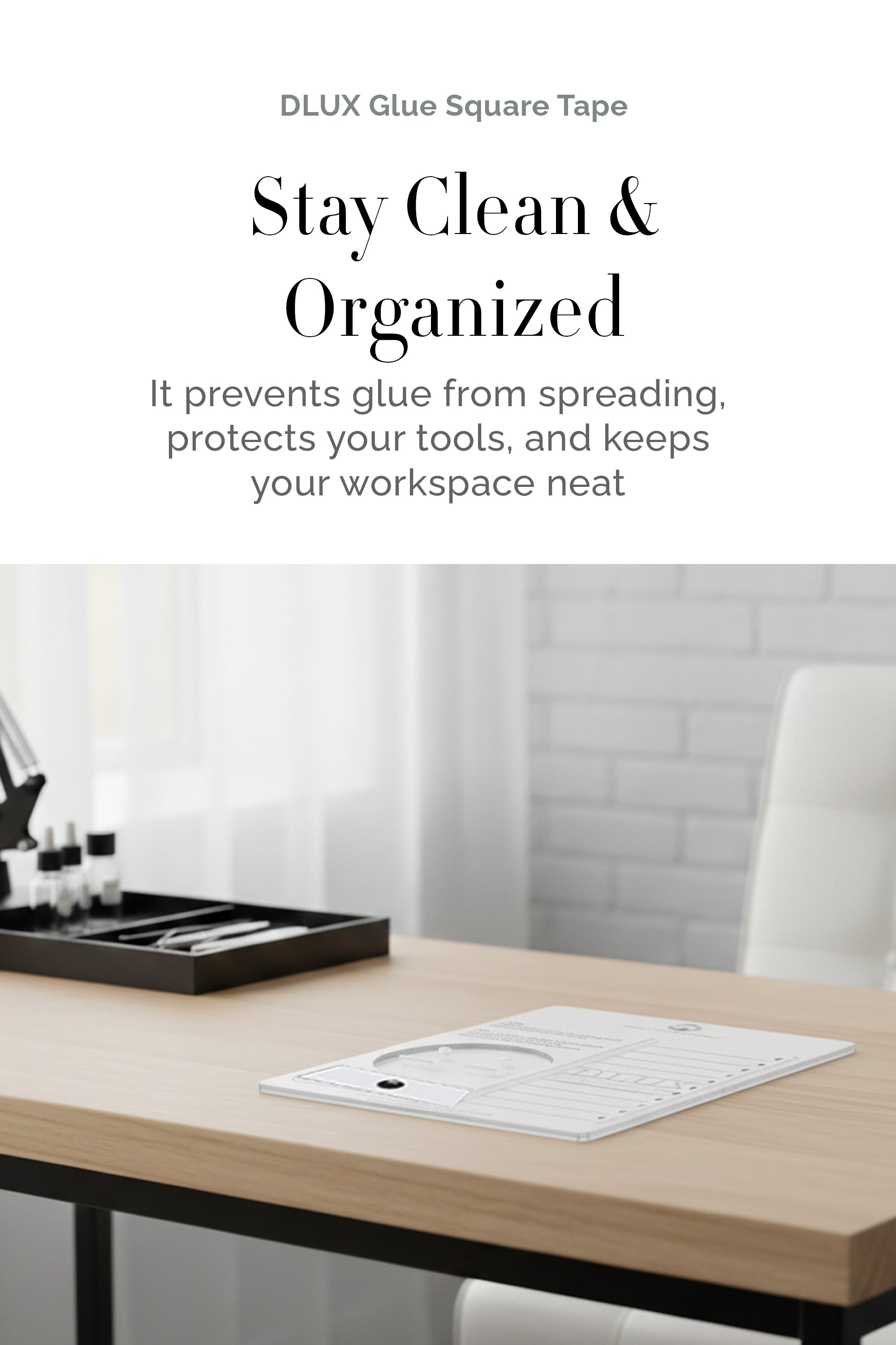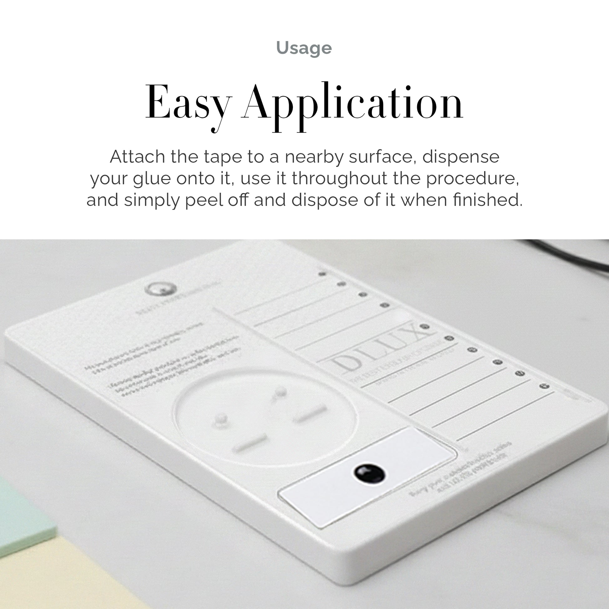 The DLUX Glue Square Tape is a convenient, sticker-type adhesive designed to make lash extension procedures cleaner and more efficient. It helps prevent glue from spreading to unwanted areas, ensuring precise and tidy applications every time. Ideal for professional lash technicians and beauty enthusiasts, this tape supports a well-organized workspace and smooth workflow. Five pieces are included in each small pack, providing an affordable and useful way to easily handle extra glue. For easy cleanup, just apply it close to your lash area, use it as necessary, then peel it off and throw it away.