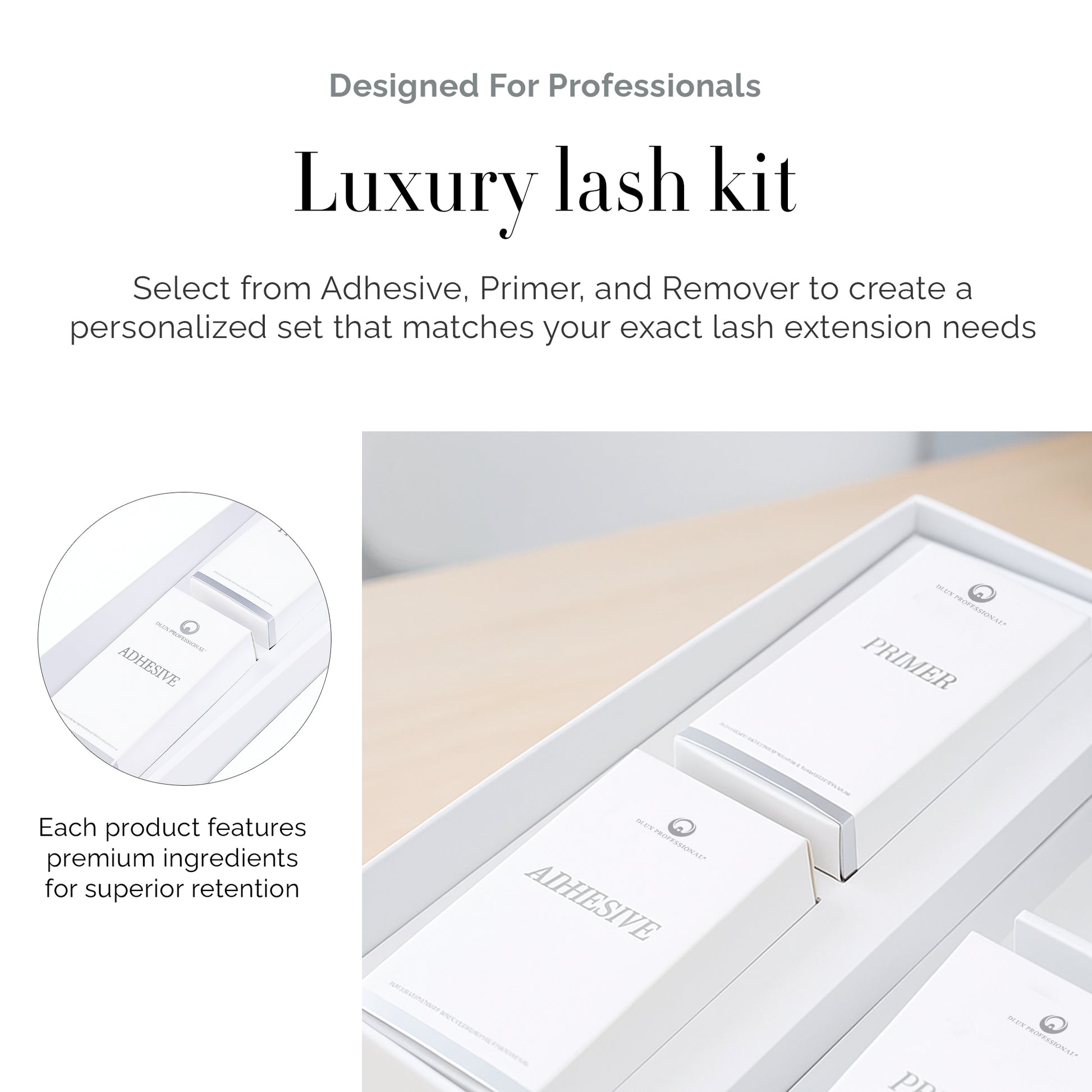 - Customizable Professional Kit: Choose from Adhesive, Primer, or Remover to create a personalized combination that perfectly suits your lash extension needs.
