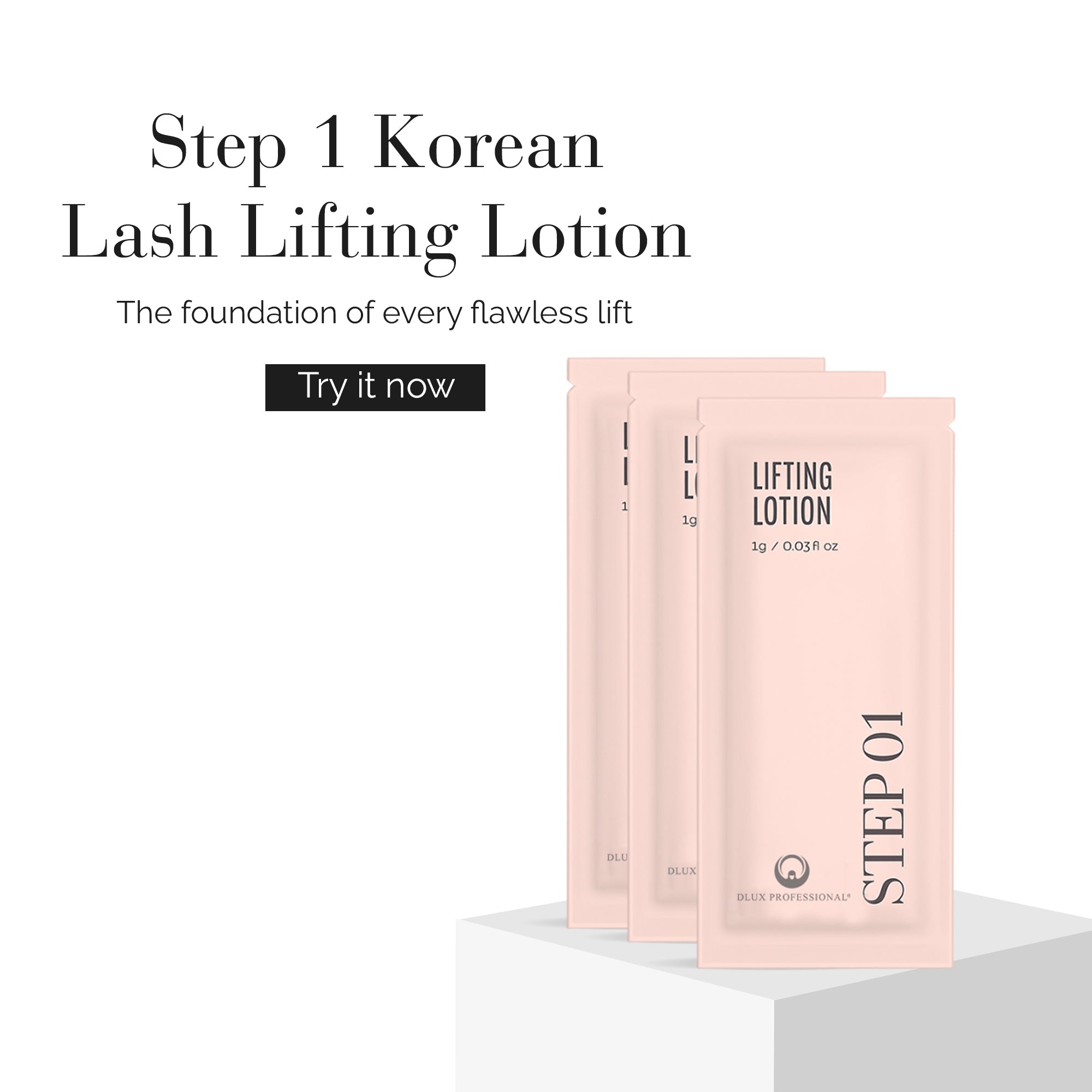 - Evenly apply the STEP 1 Lifting Lotion to your lashes and leave it on for the recommended time.