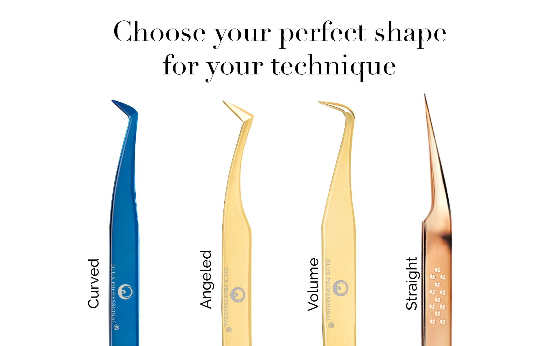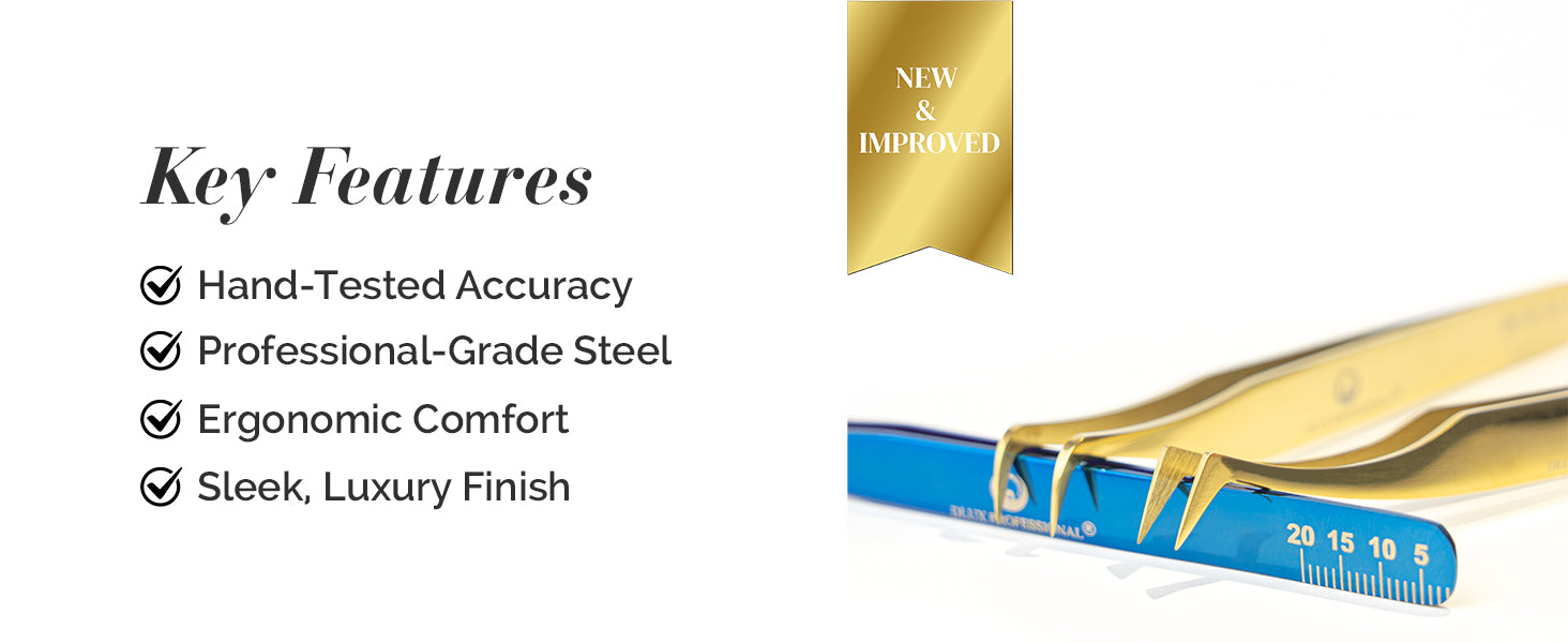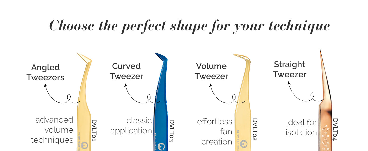 New and Improved Luxury Line Tweezer by DLUX Professional. Crafted with precision from top-quality Japanese steel, these tweezers are the ultimate tool for lash artists seeking a sleek and stylish design.