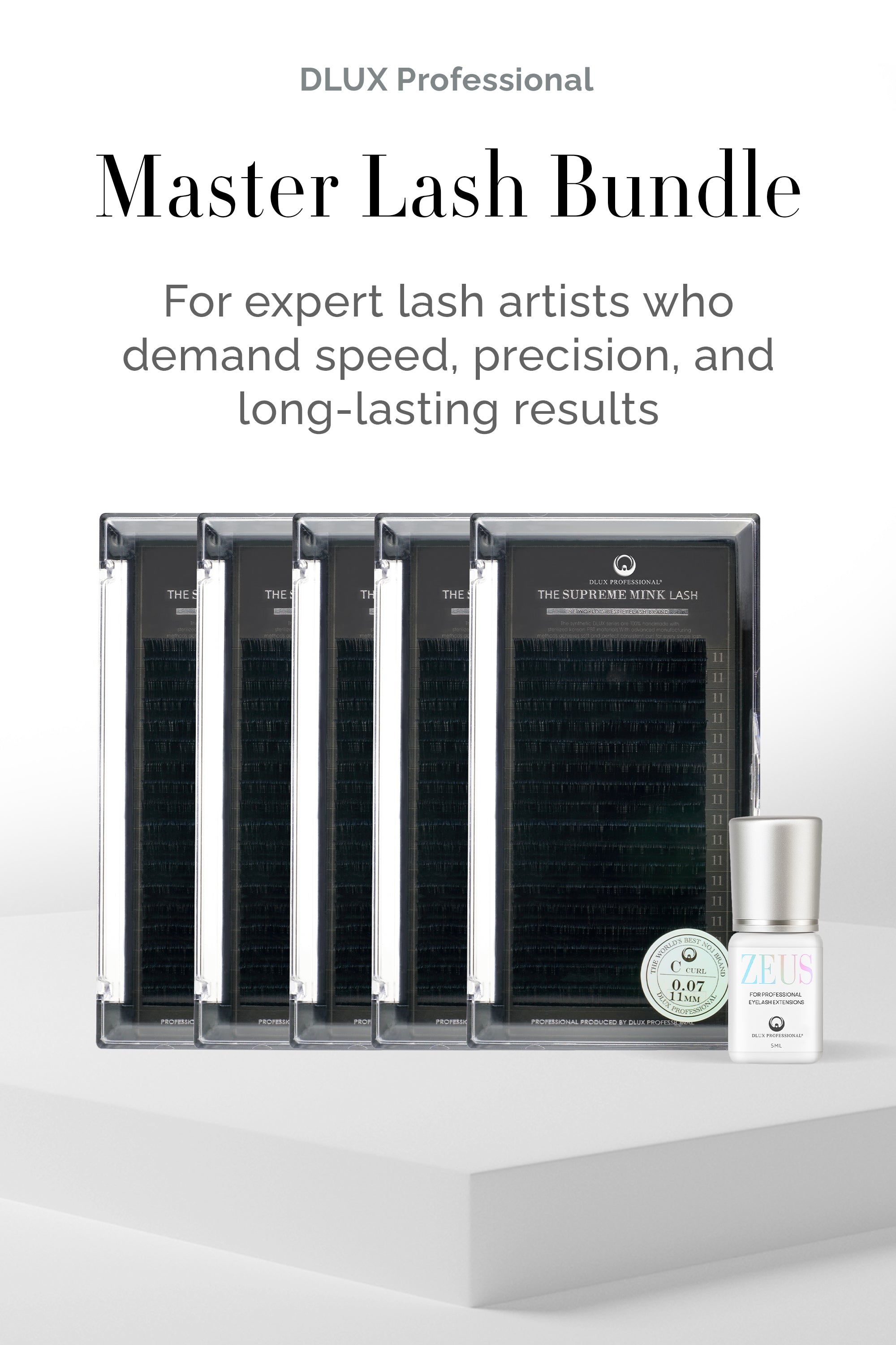 For expert lash artists who demand speed and performance, the DLUX Professional Master Lash Bundle delivers. This set includes 5 pairs of top-tier lash extensions and our powerful Zeus 3ml Lash Glue, trusted by professionals worldwide for its lightning-fast dry time and unmatched retention.
