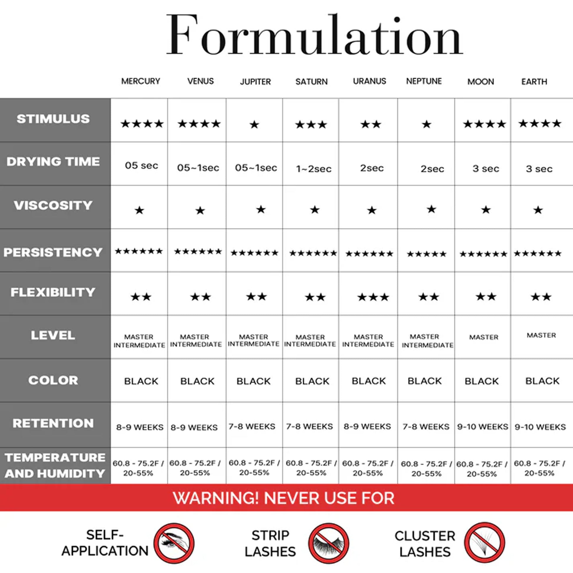 But wait, there's more! We know not all lashes are created equal. That's why our Universe Collection offers a range of adhesives to suit different needs.