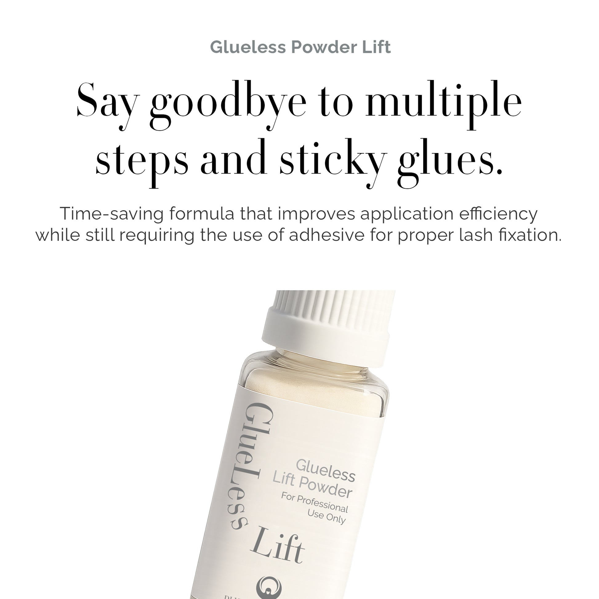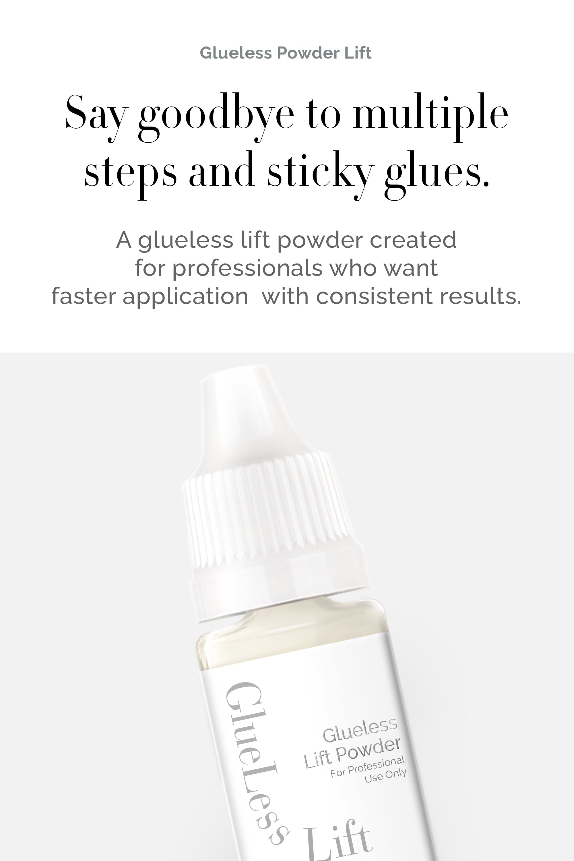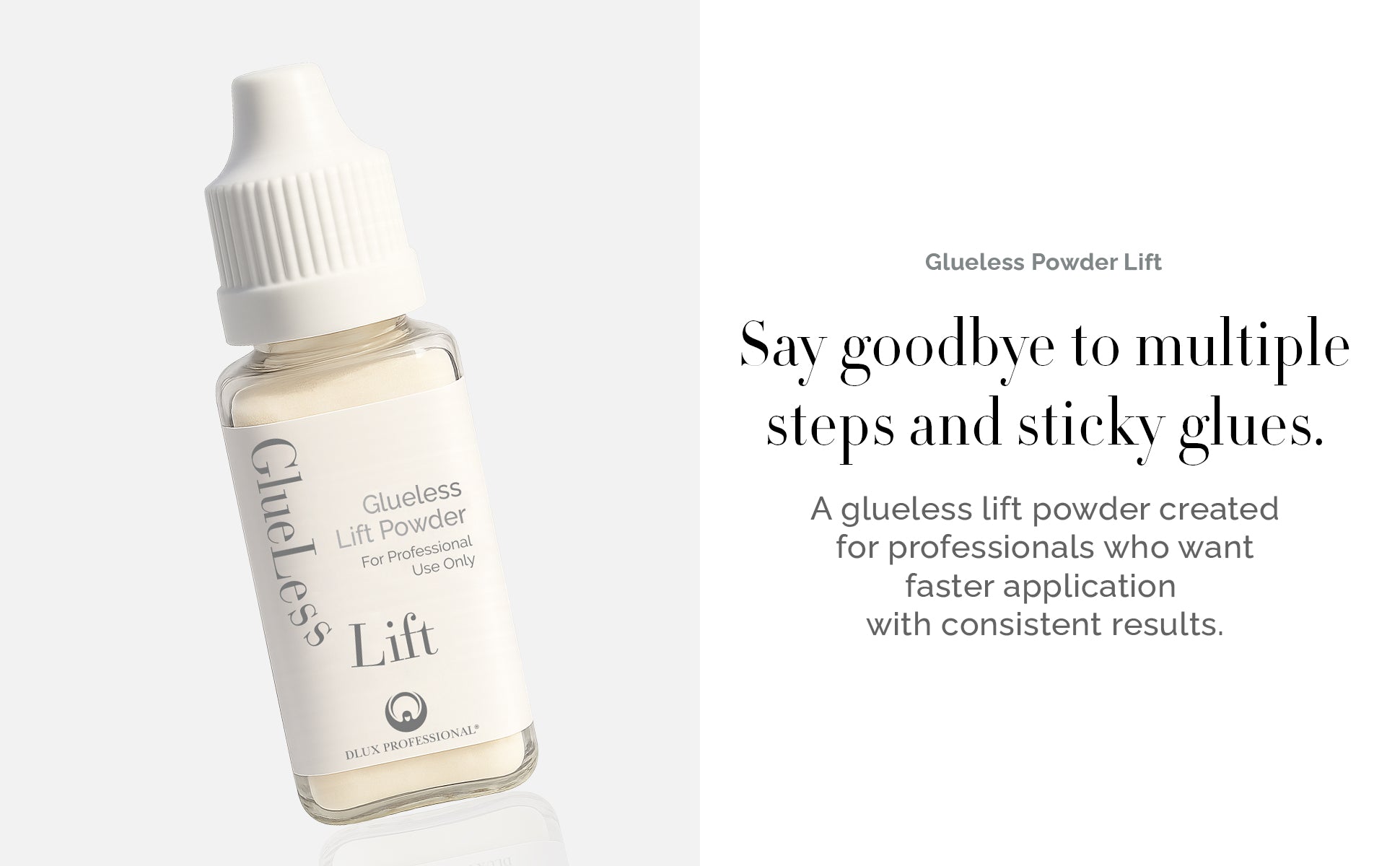 Dlux Glueless Lift powder is a white formula designed exclusively for lash professionals who want to save time without compromising results.