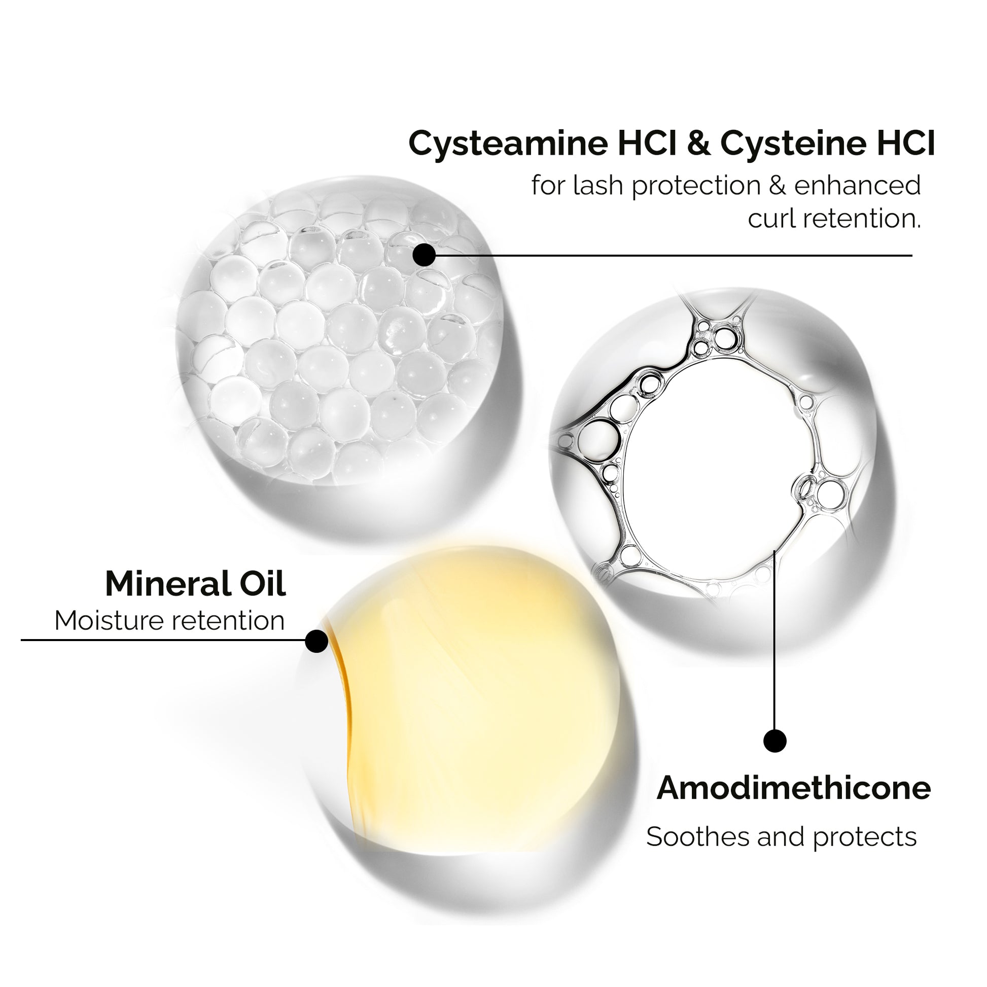 Cysteamine HCI & Cysteine HCI – for lash protection & enhanced curl retention.
