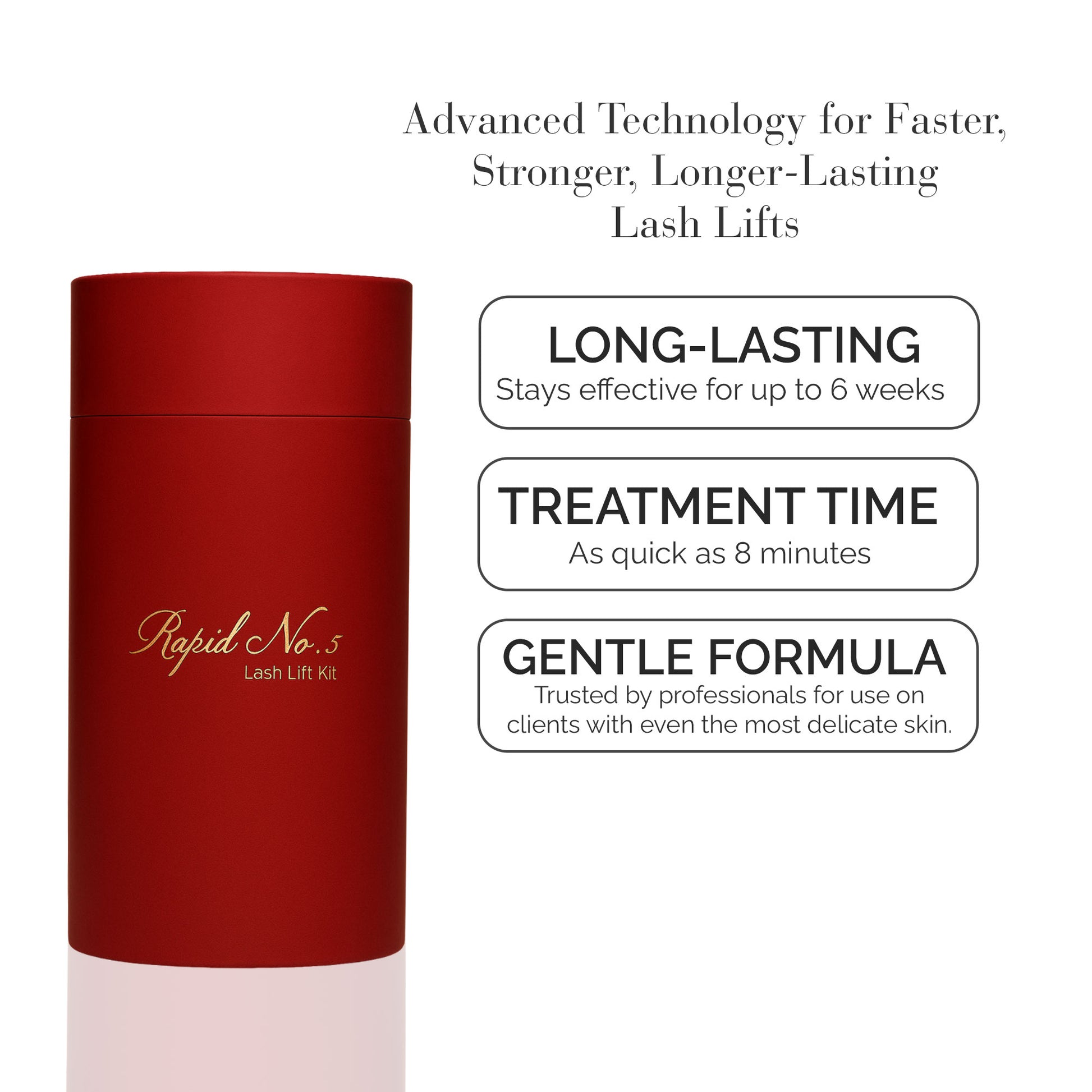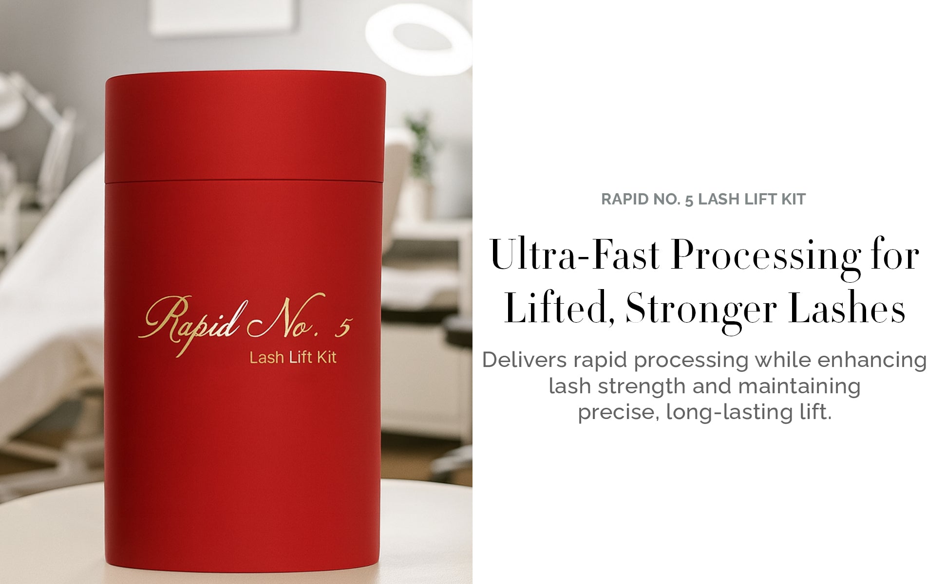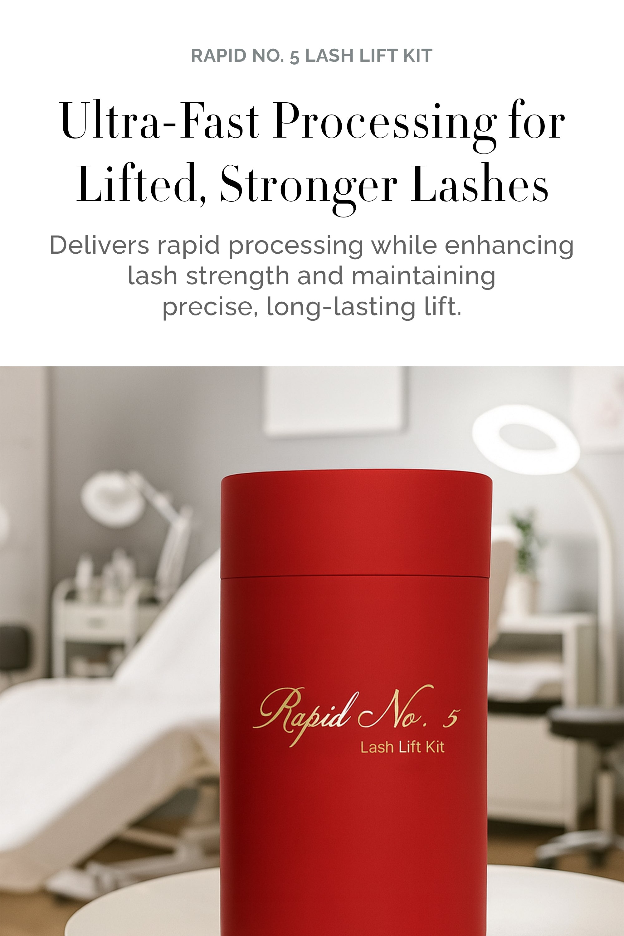 Engineered for lash professionals, the Rapid No.5 Lash Lift Kit delivers an advanced lifting system that reduces processing time, enhances lash strength, and ensures flawless retention—so you can maximize efficiency without compromising results.