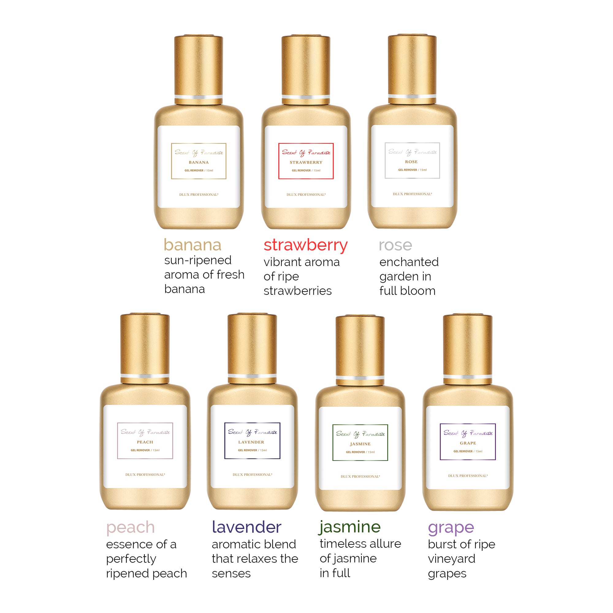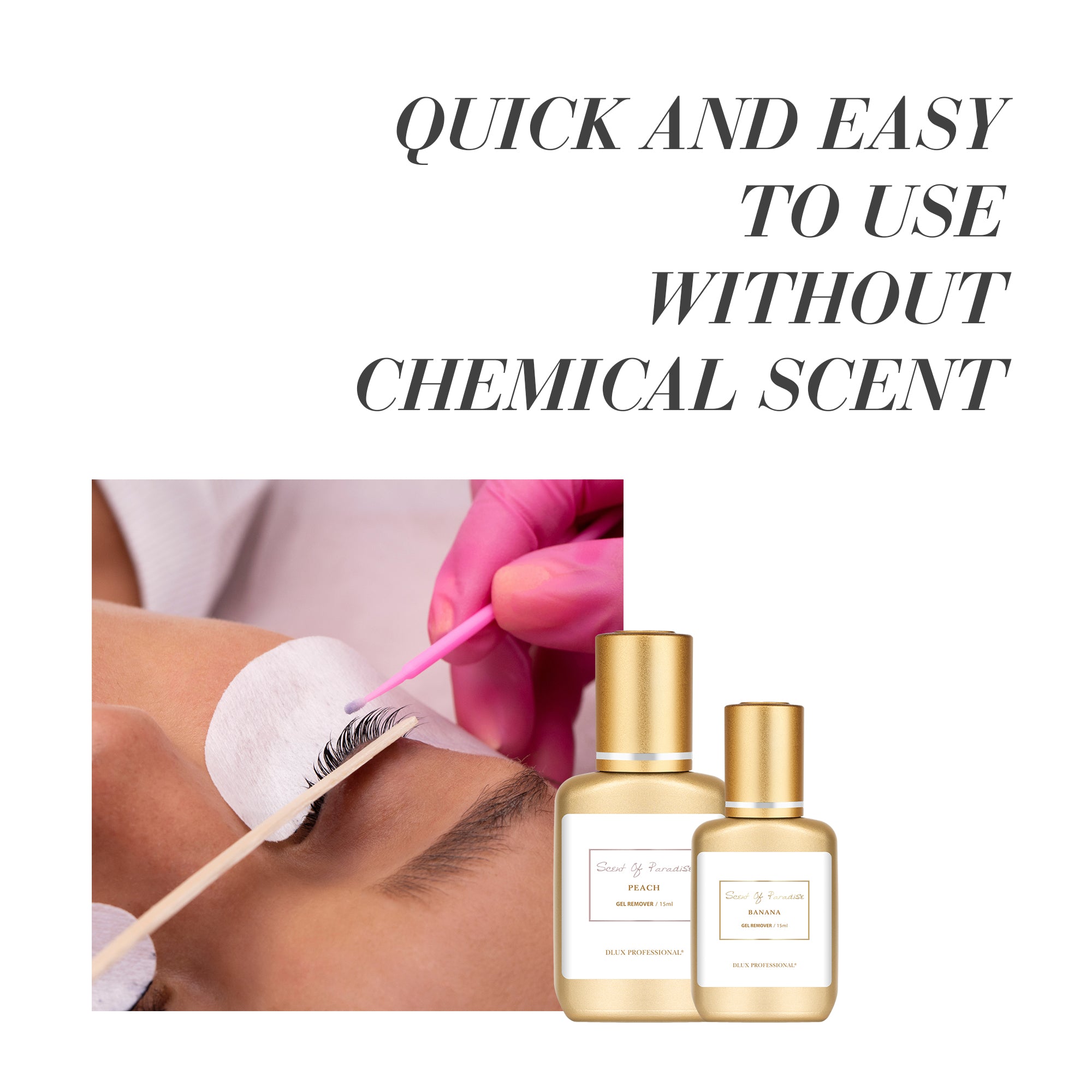 DLUX Scent of Paradise Gel Remover makes lash extension removal gentle, fast, and enjoyable. Its clear gel formula allows for precise application without damaging natural lashes, while seven lovely scents—Grape, Rose, Strawberry, Peach, Jasmine, Lavender, and Banana—add a touch of luxury. The 15ml drop bottle is easy to use and perfect for travel. Ideal for those who wear extensions often and love a scented experience. Not recommended for sensitive or irritated skin. Avoid making eye contact at all times, and keep in a dry, cold place. Professionals trust DLUX because it consistently produces safe, efficient results.