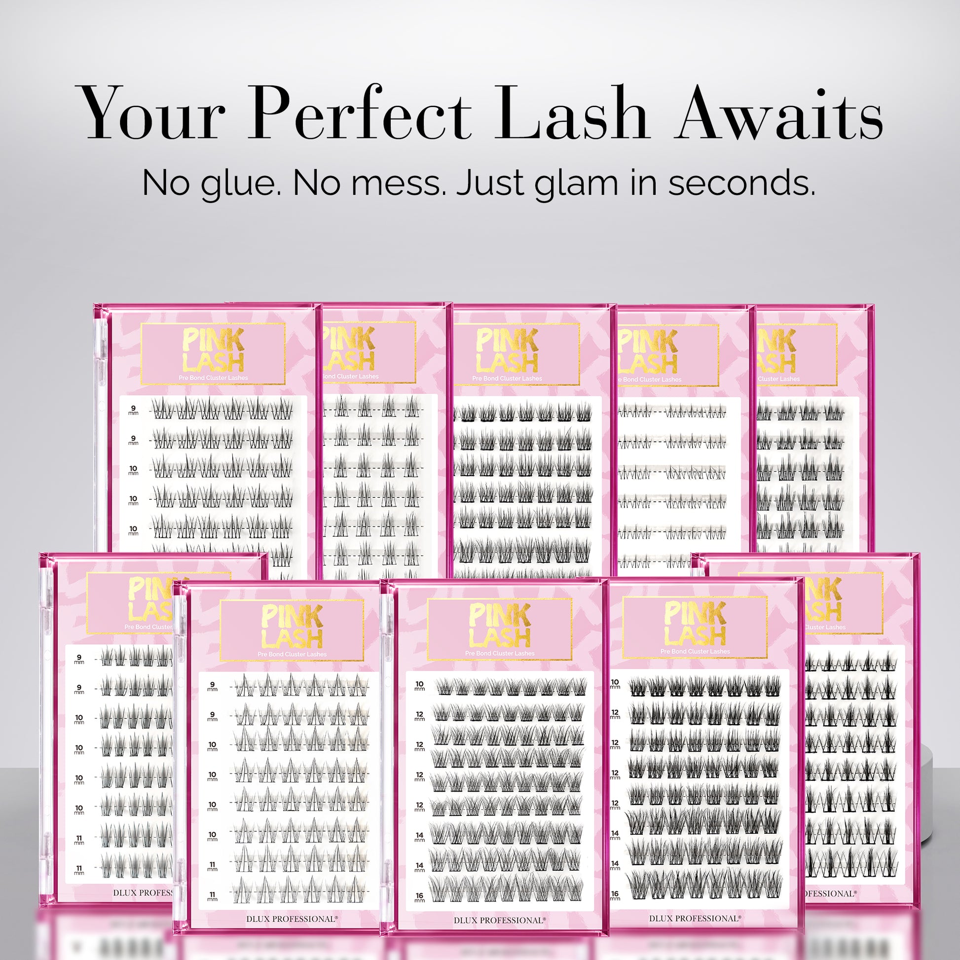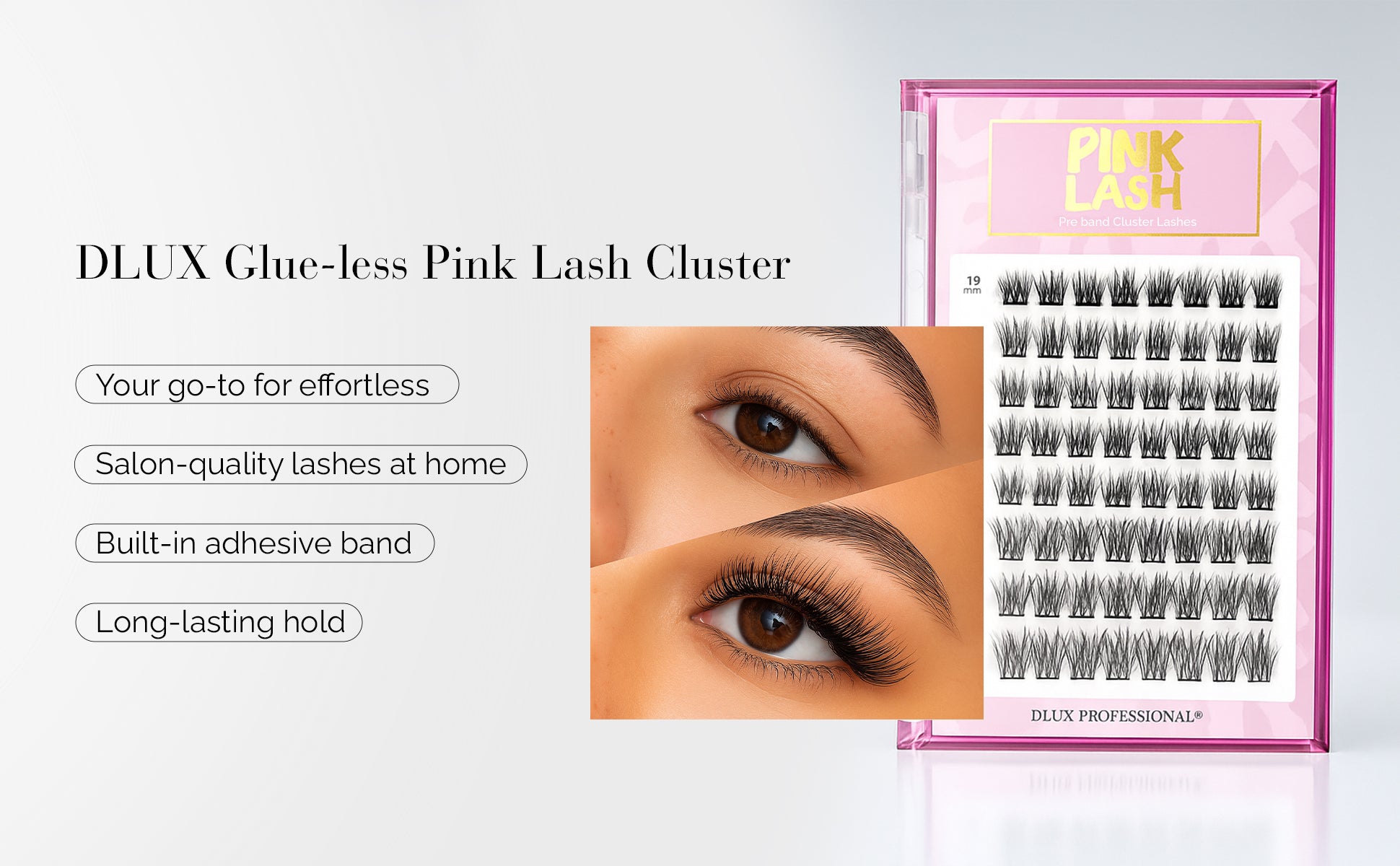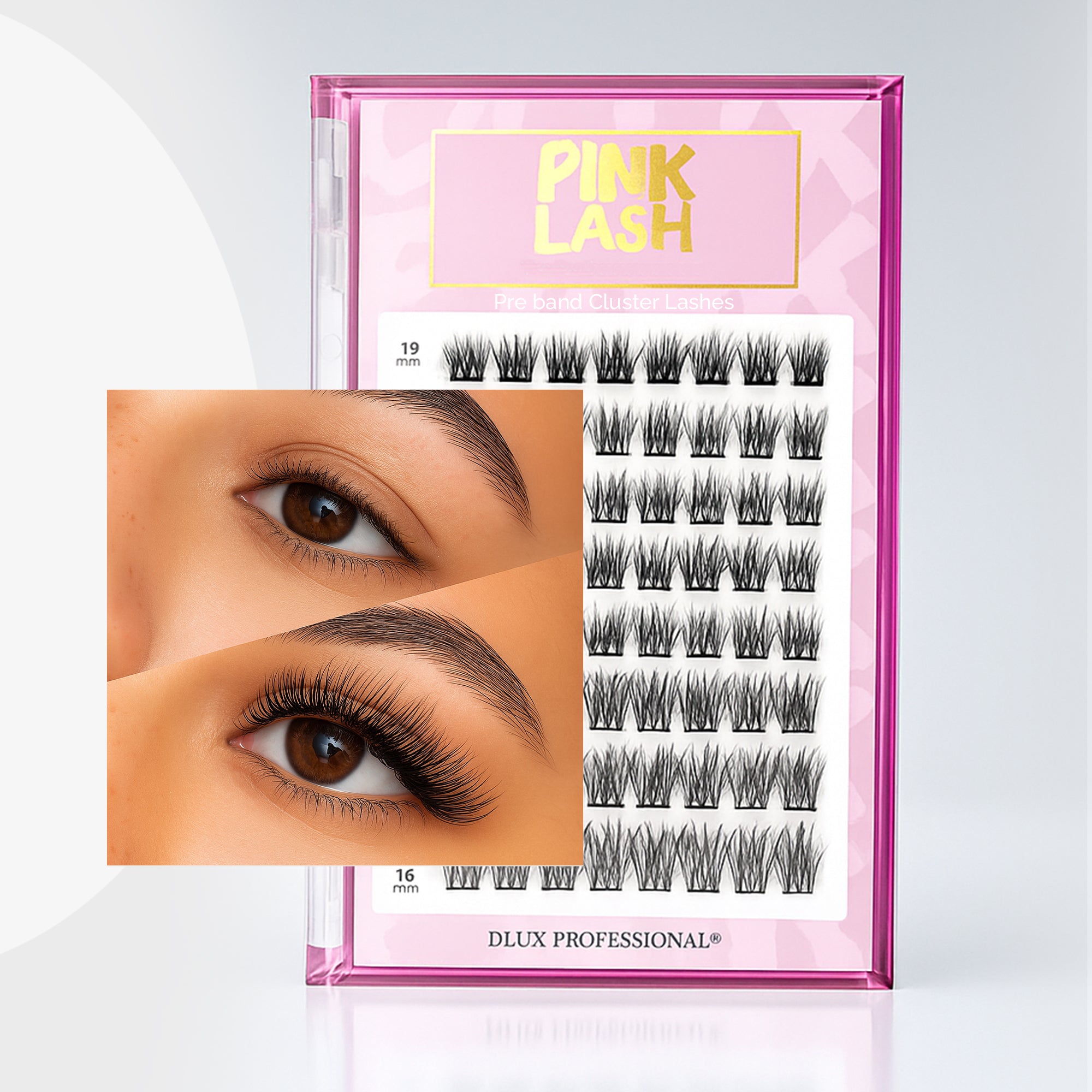 The DLUX Glue-less Pink Lash Clusters are your ultimate solution for effortless beauty. Designed with a built-in adhesive, these lashes give you a flawless finish in just one step—no lash glue or professional help required.