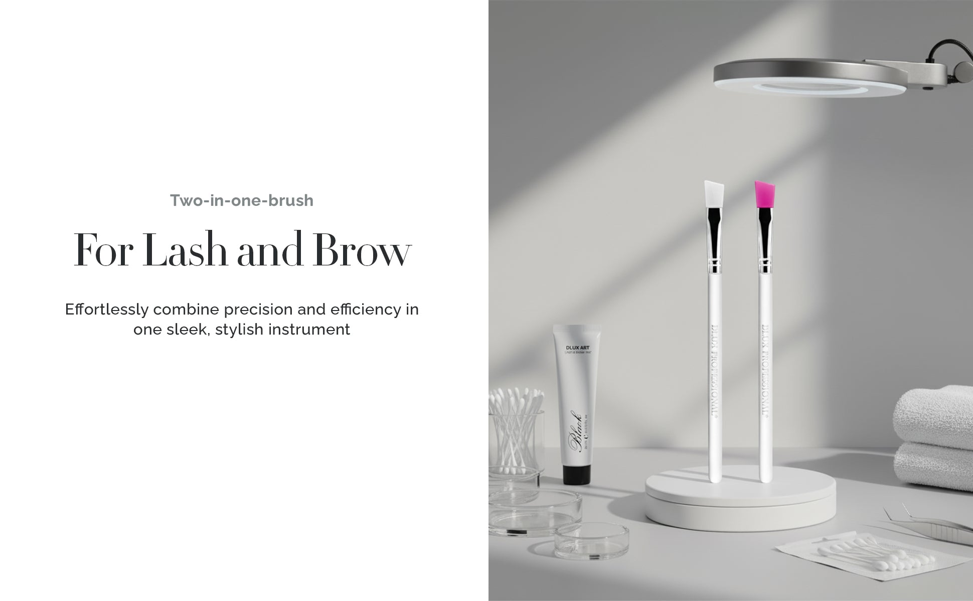 The DLUX color Brush is made to apply brow and eyelash tint precisely and effortlessly. It offers great control and keeps your hands clean with its long, stylish handle, which comes in either pink or white. This brush is lightweight and portable, making it ideal for both personal beauty routines and professional salon use. It is perfect for quick, effective tinting because of the soft yet stiff bristles that provide rapid, even dye penetration. The DLUX Tint Brush is a necessary tool for any beauty artist since it blends functionality and style in an easy-to-clean and store manner.